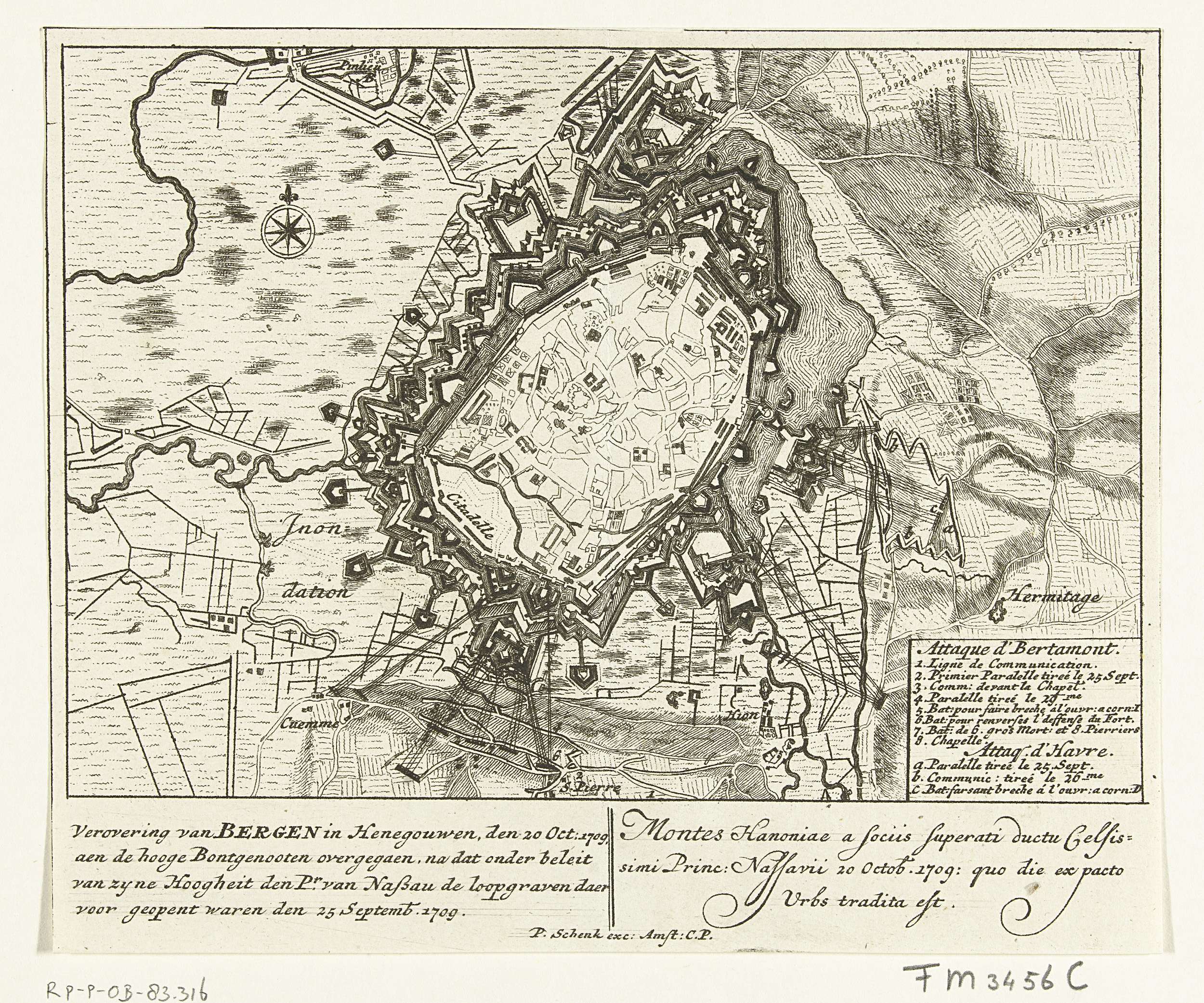 Kaart van Mons, 1709