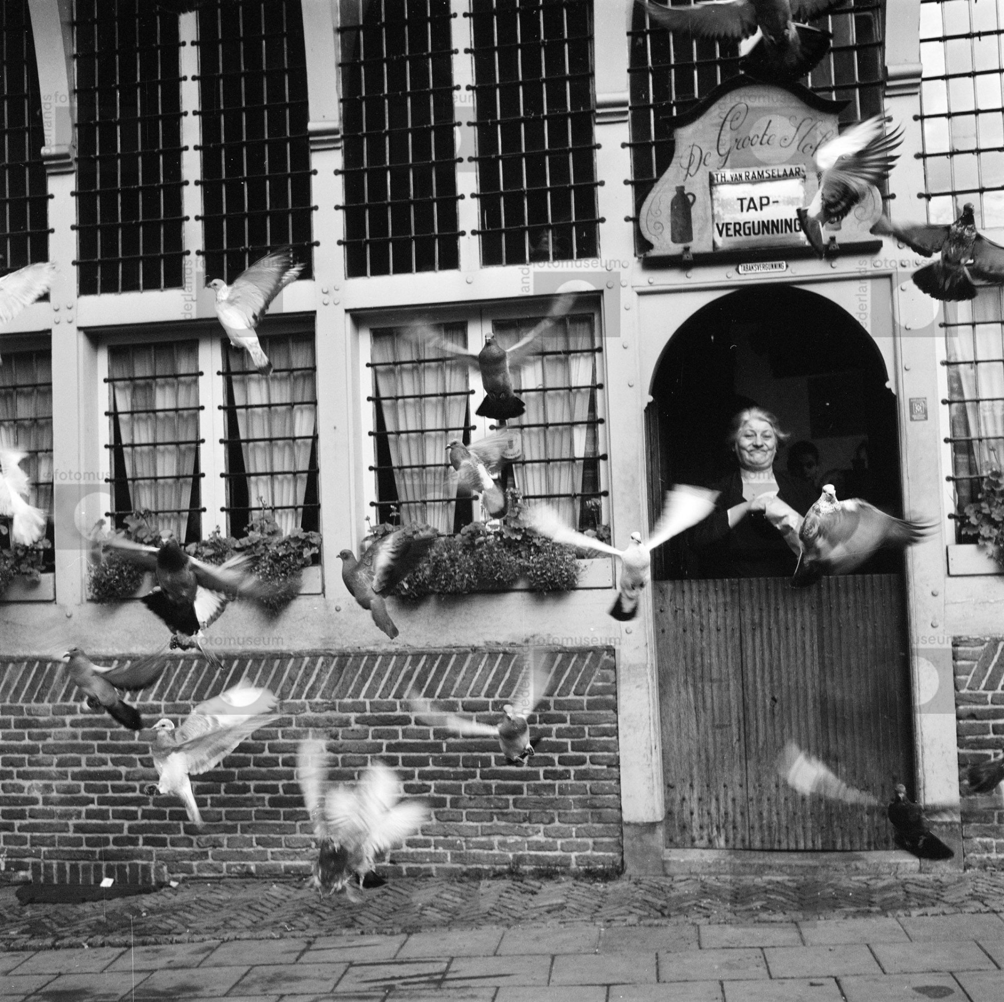 Mevrouw Ramselaar (waardin café De Groote Slok) voer...