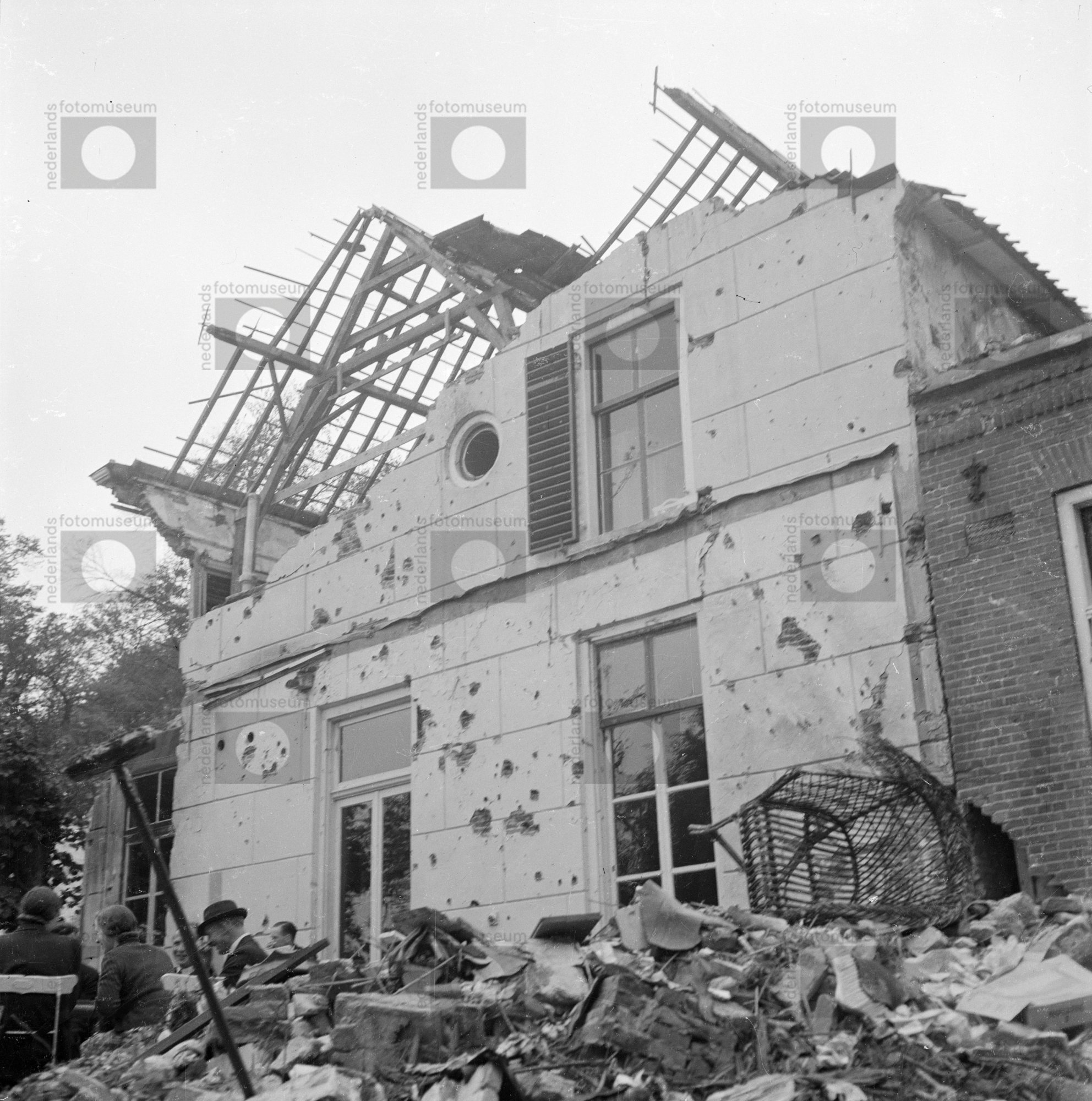 Oorlogsschade aan hotel De Grebbe na bombardement op...