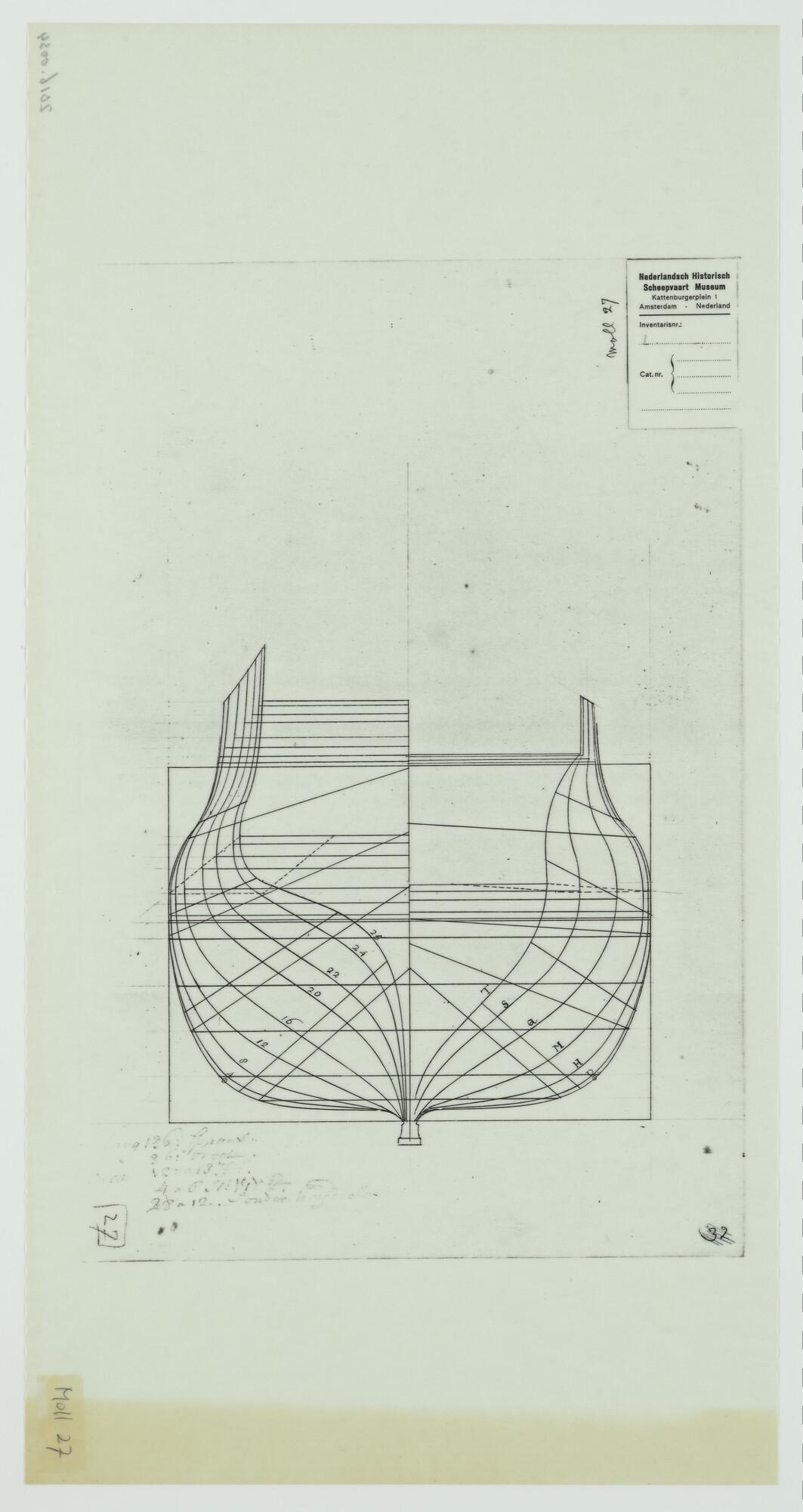 Lijnenplan en spantenraam van het fregat Zr.Ms. Java...