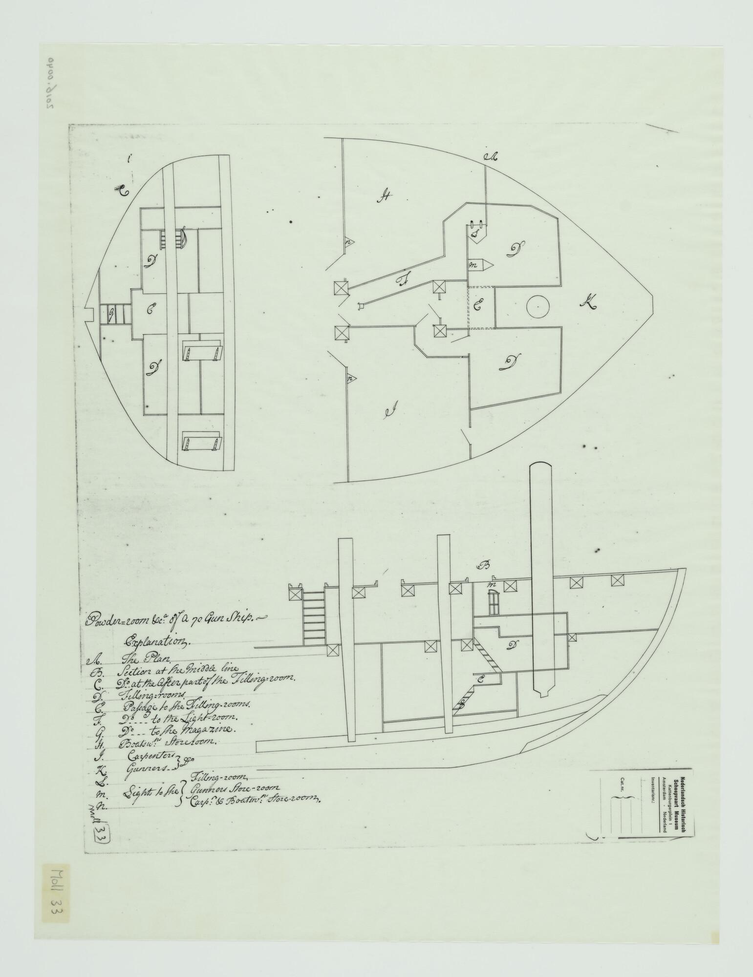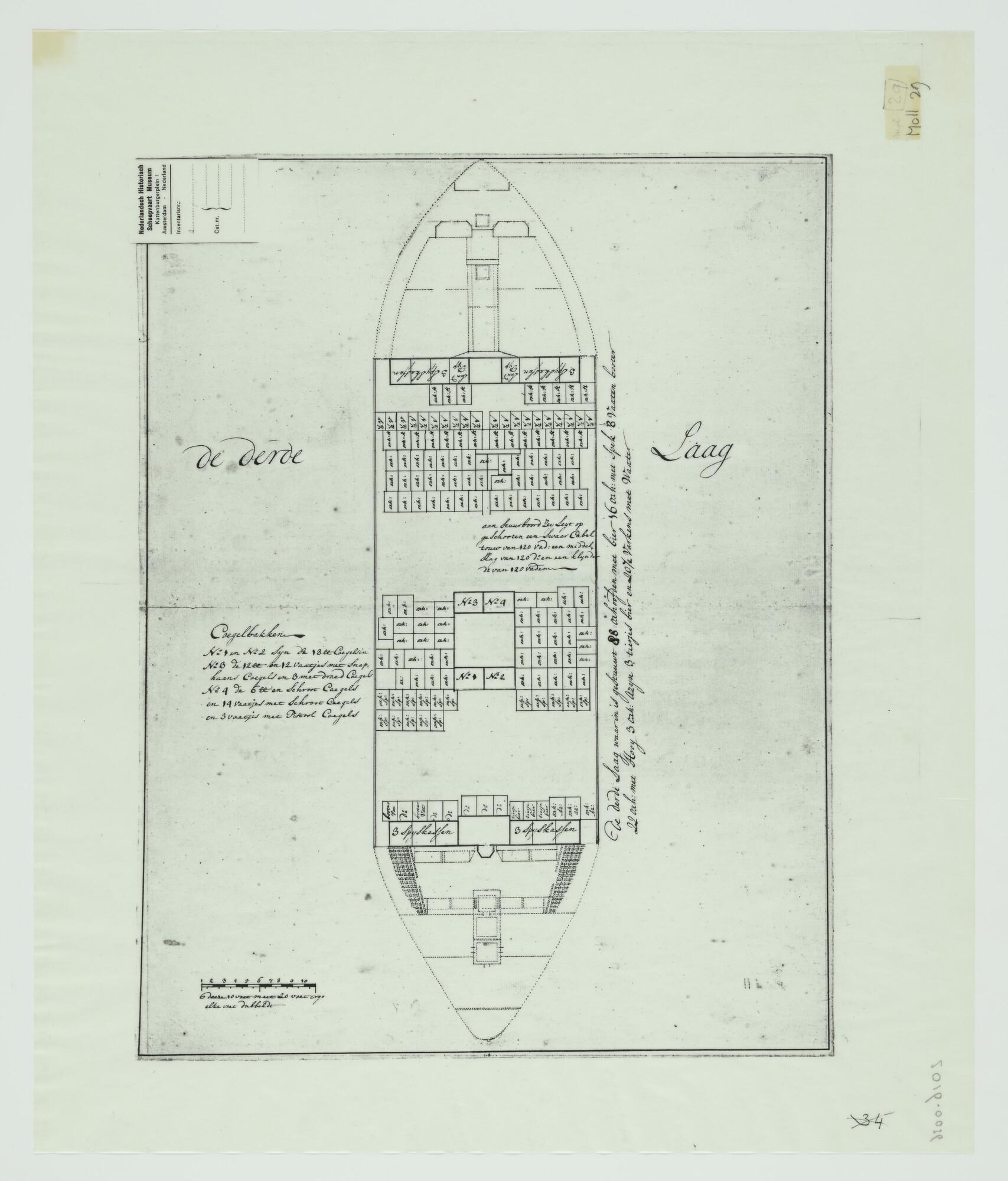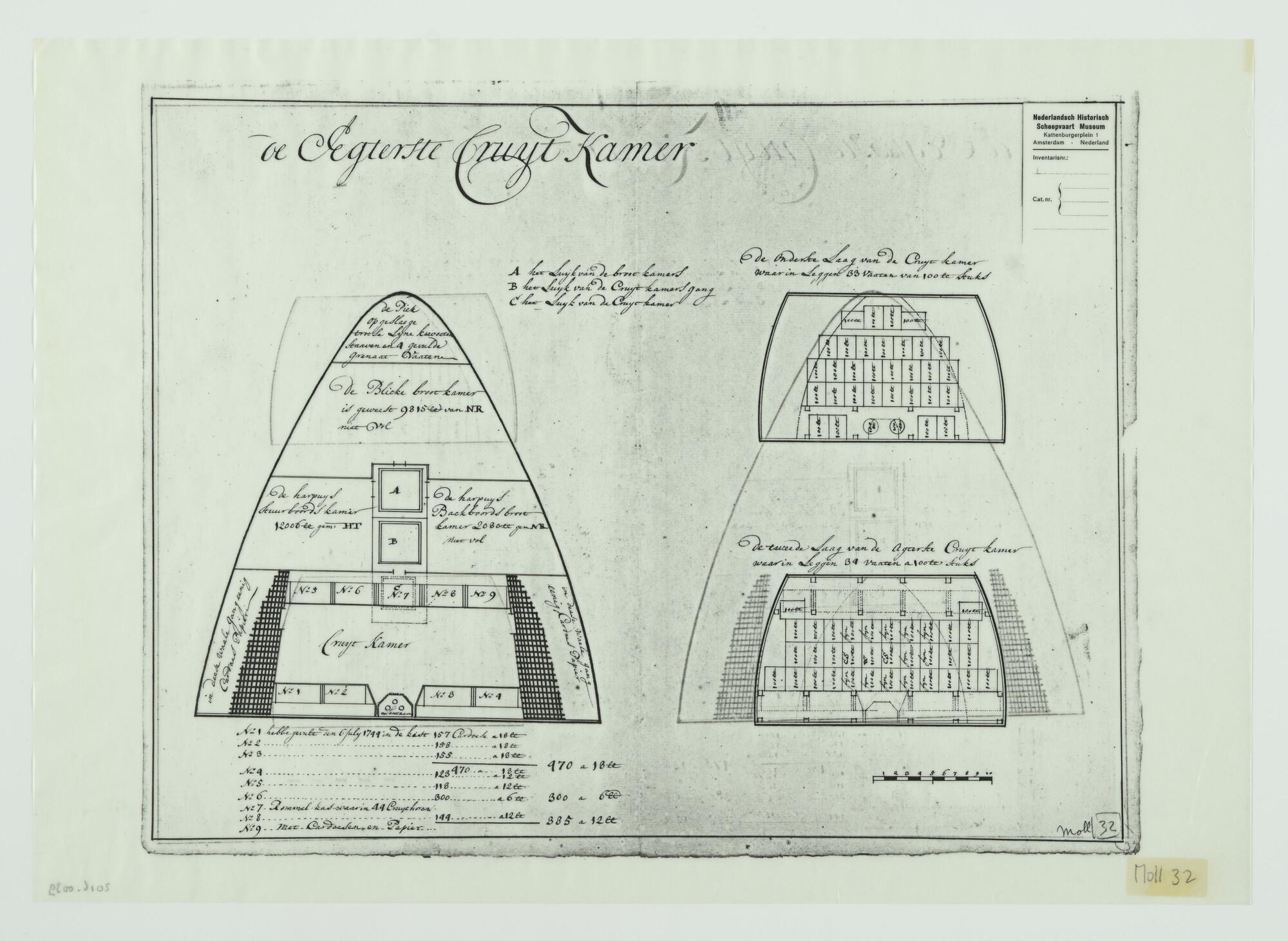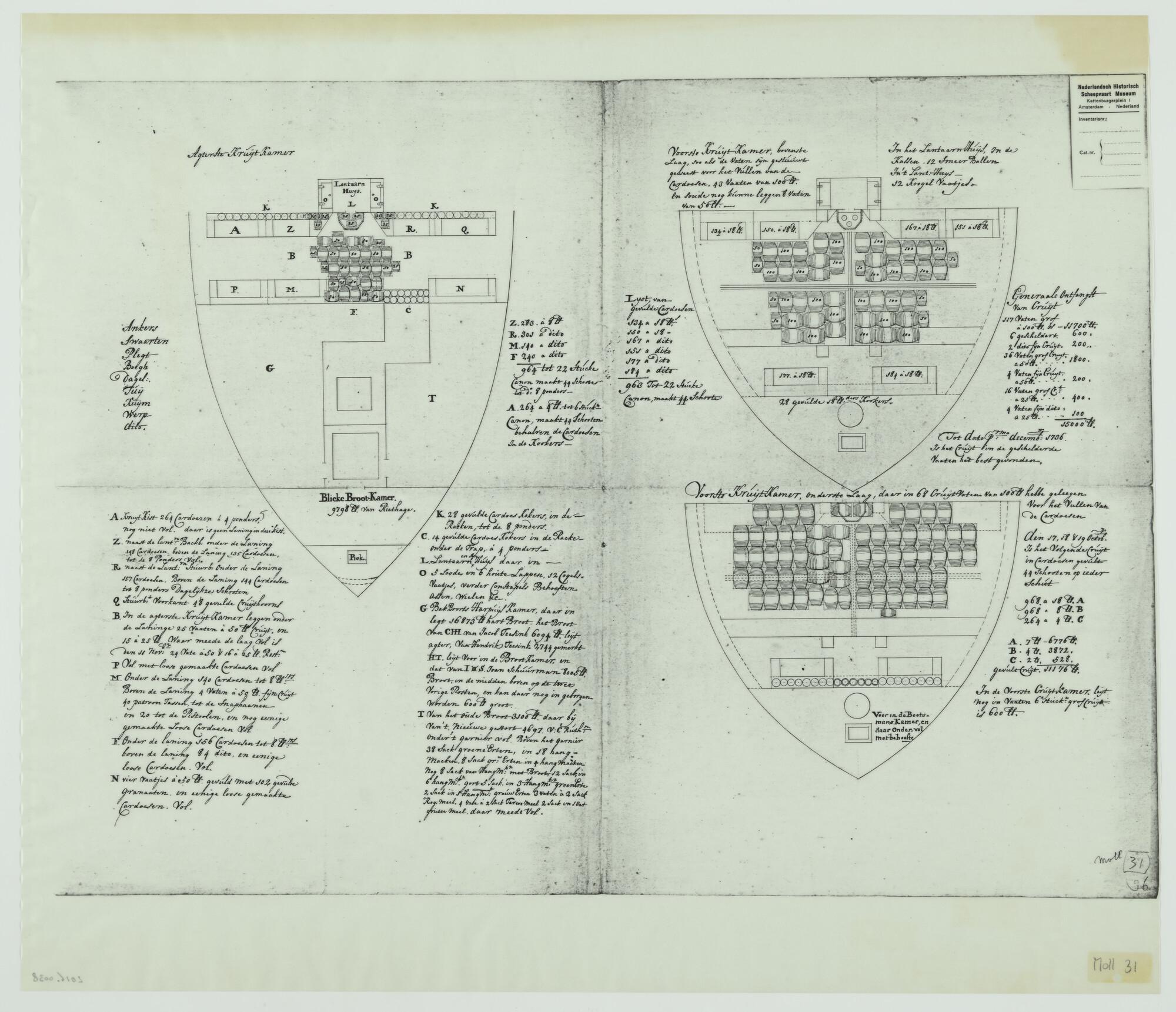 Plattegrond met stuwplan in het ruim van een (oorlog...
