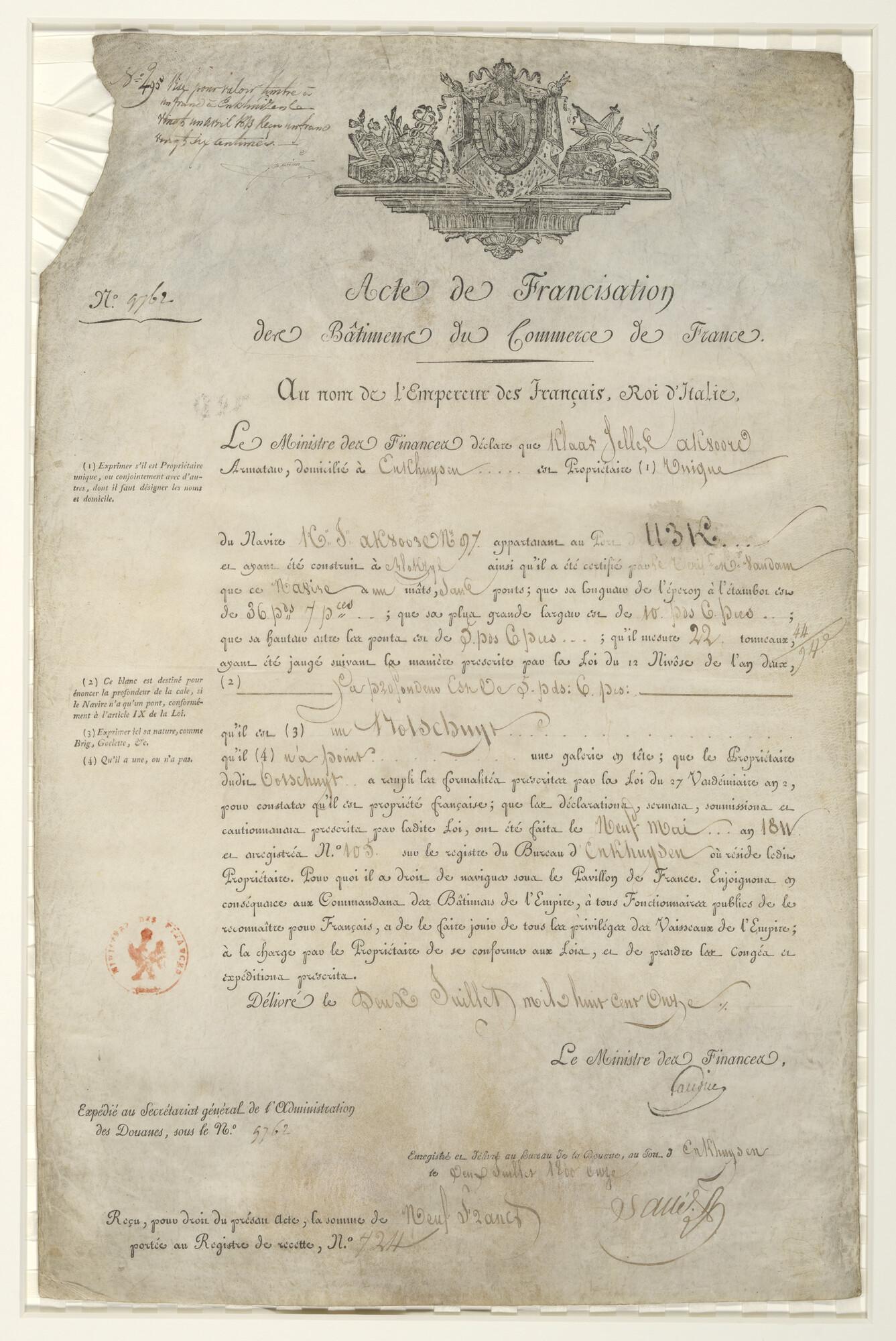 Spiegel met hakkebord, galerij en galjoen van H.M.S....