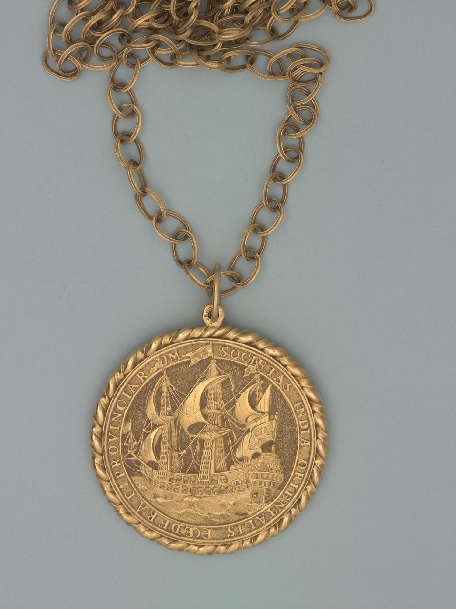 Opbergdoos bij draagpenning, door de VOC in 1753 ges...