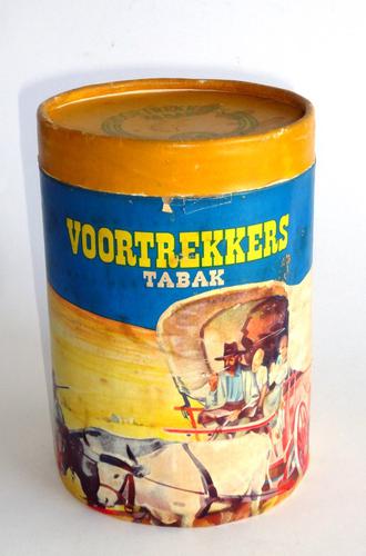 Tabaksdoos. Voortrekkers tabak. Ronde kartonnen hog...