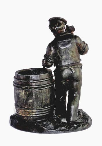 Sigaretten houder. Metalen afbeelding van een kuipe...