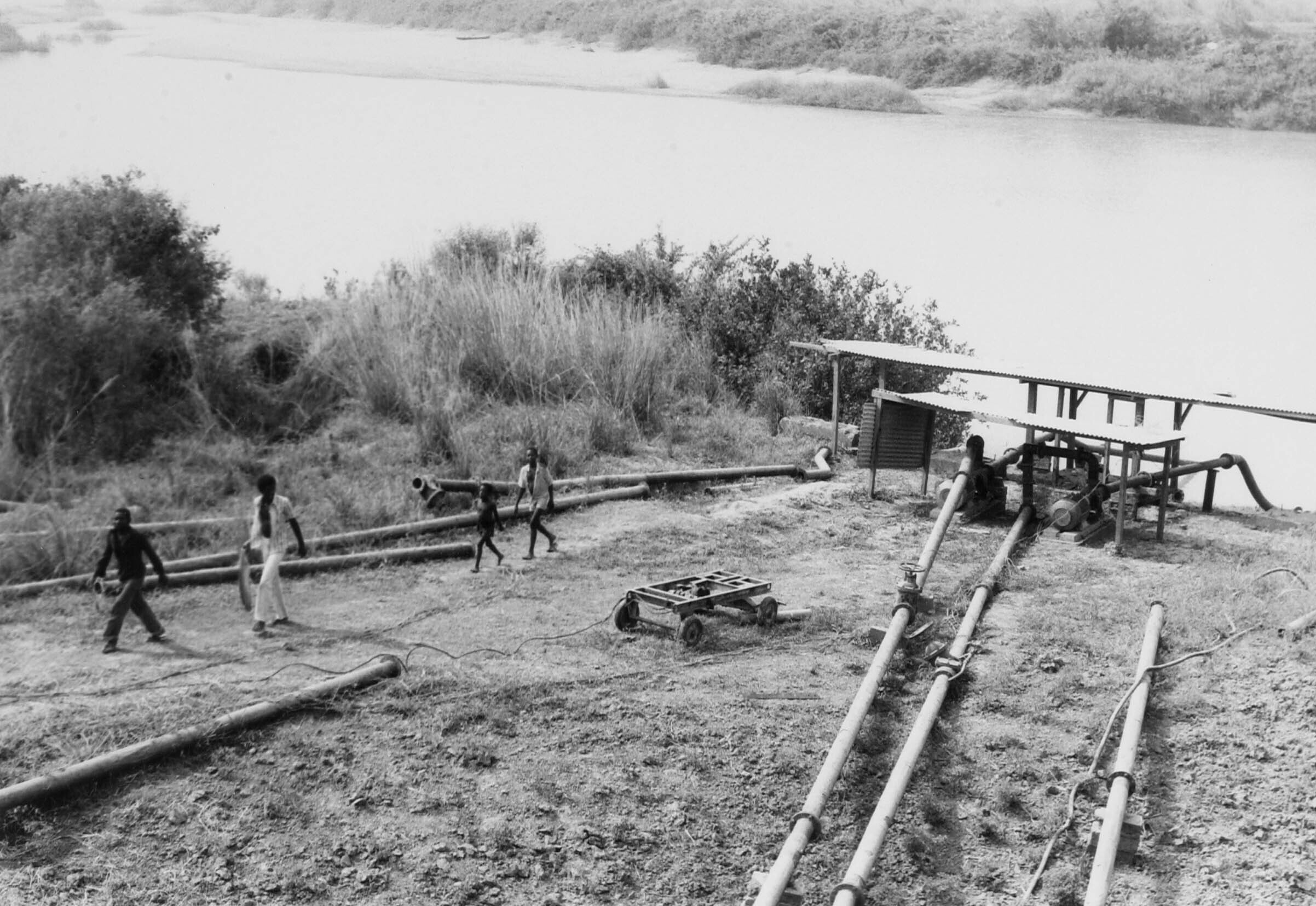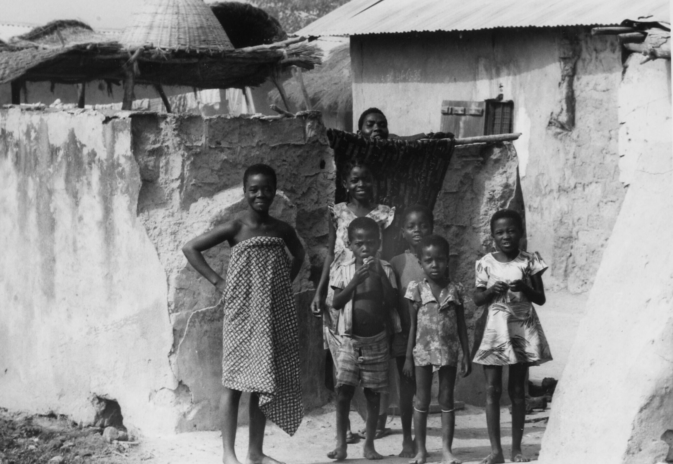 Kinderen aan de waterkraan in een dorpje aan de Witt...