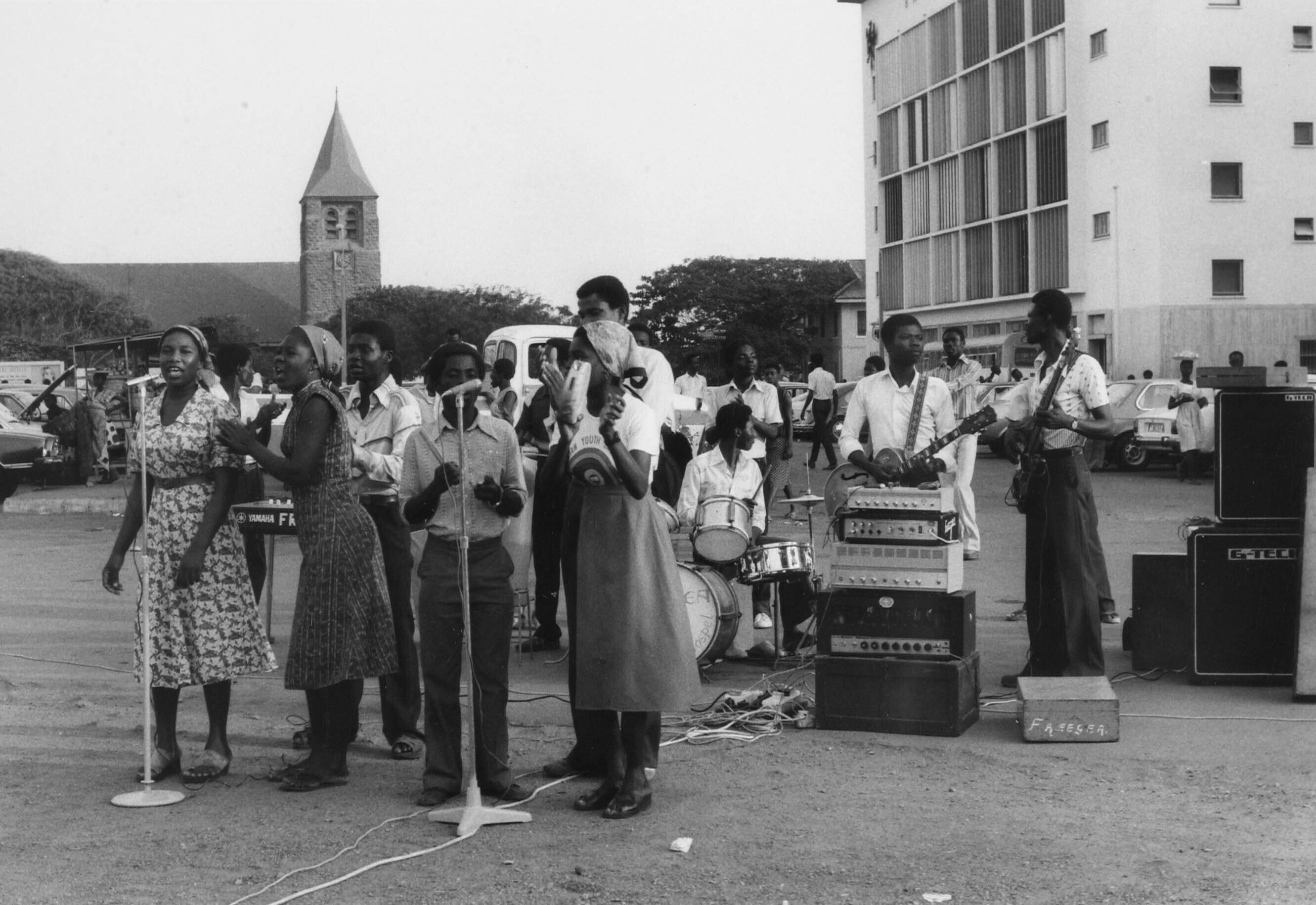 Usher Town, religieuze bijeenkomst. De popband aan h...