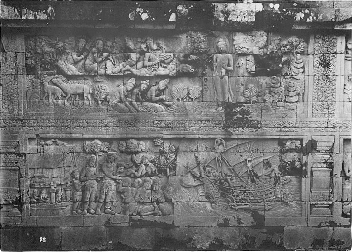 Bas reliëf van de Borobudur, Java, Indonesië (1890-1...