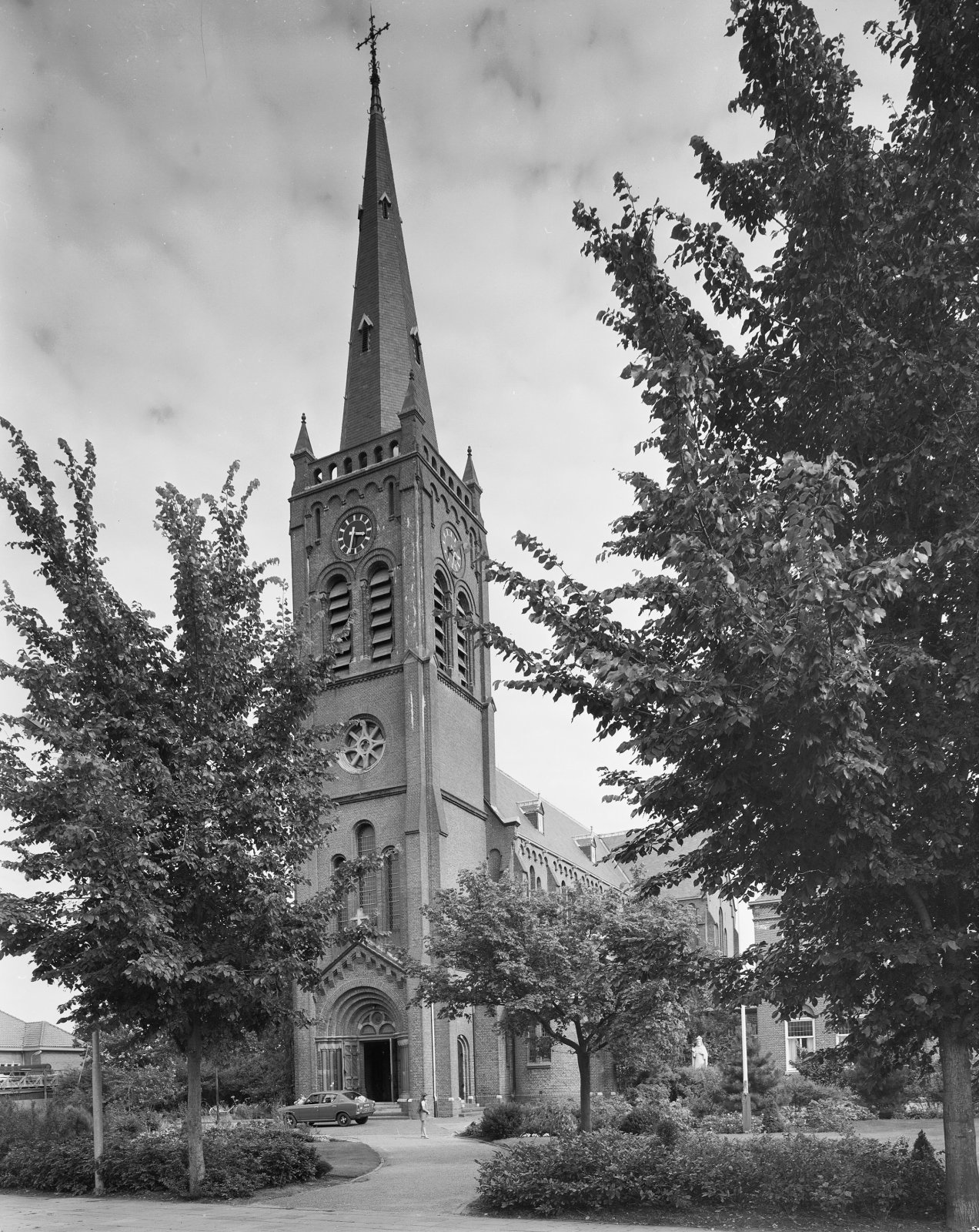 R.K. kerk en toren vanuit het westen