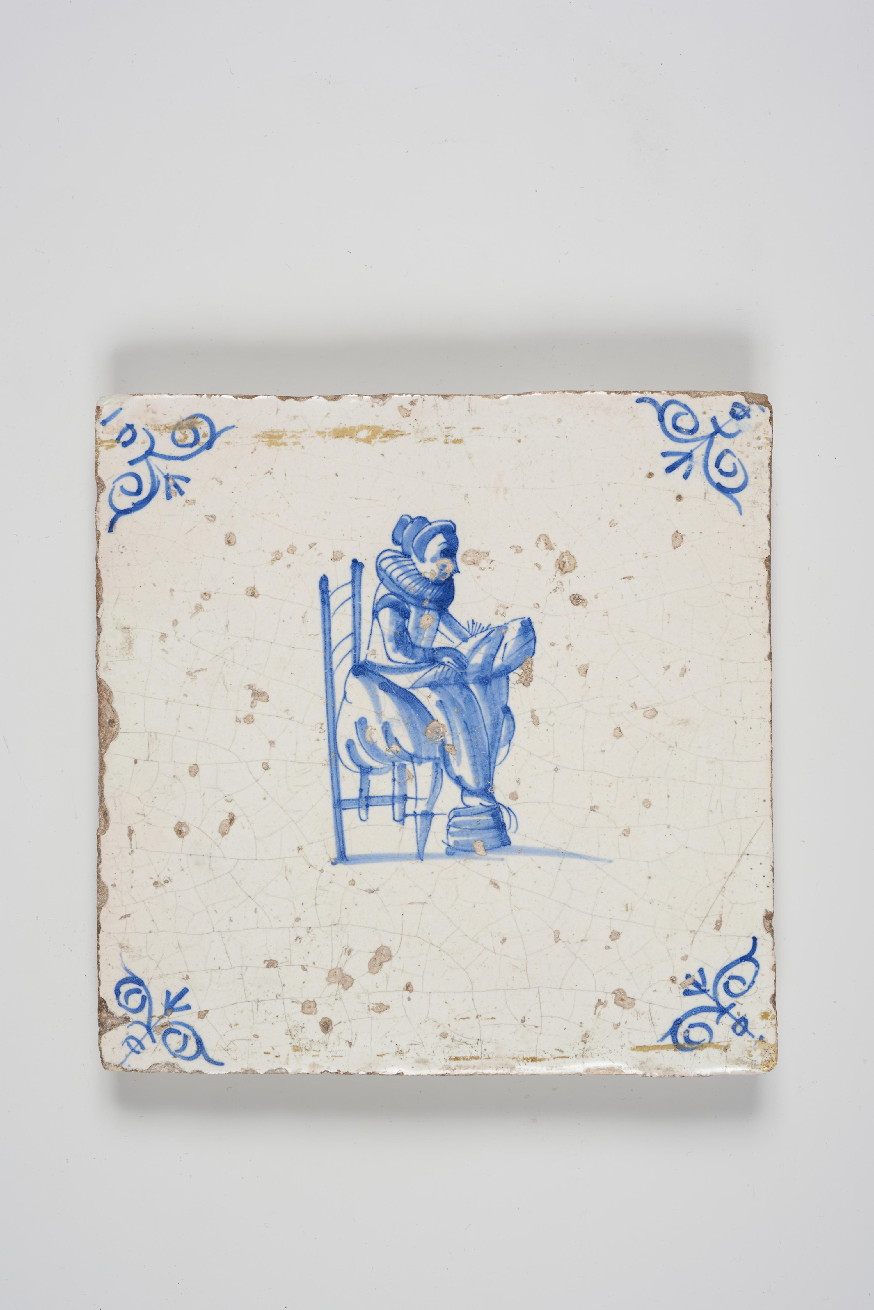 Wandtegel met afbeelding kerkganger, 1620–1660
