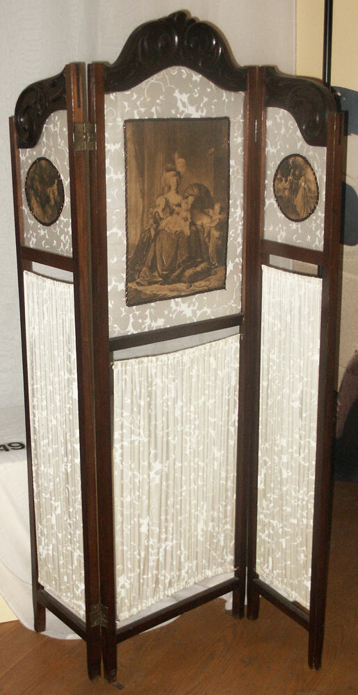 Kamerscherm van hout, bespannen met textiel en gedec...