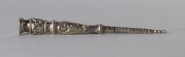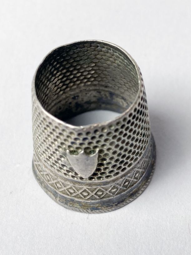 Open zilveren vingerhoedje met onderaan een ruitrandje