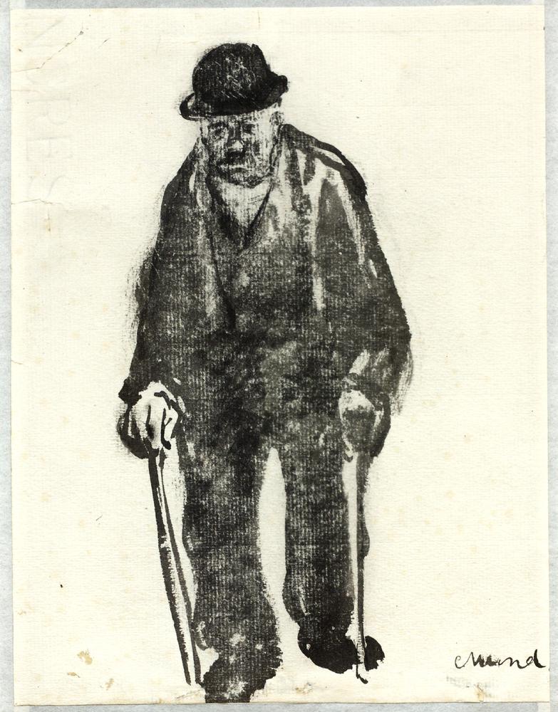 Oude man met twee wandelstokken