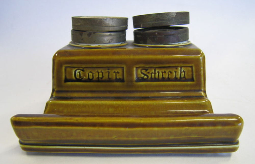 Inktstel van keramiek, glas en metaal door AB. ca. 1...