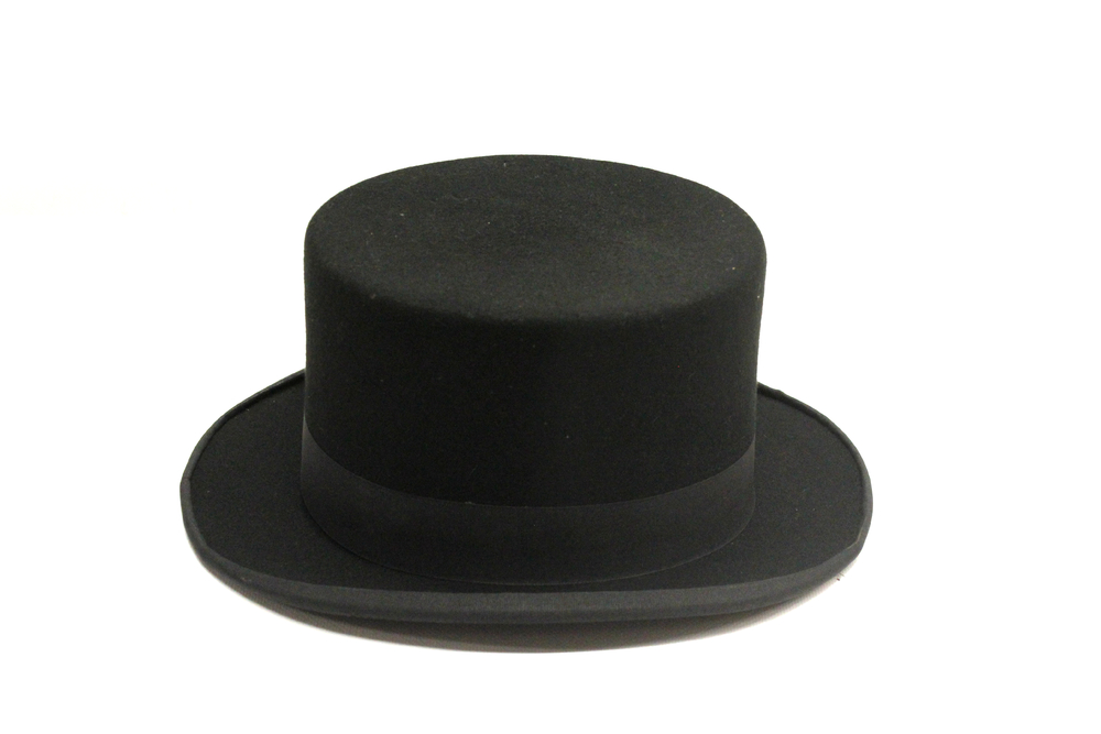 Hoed type hoge hoed van textiel en karton ca. 1950