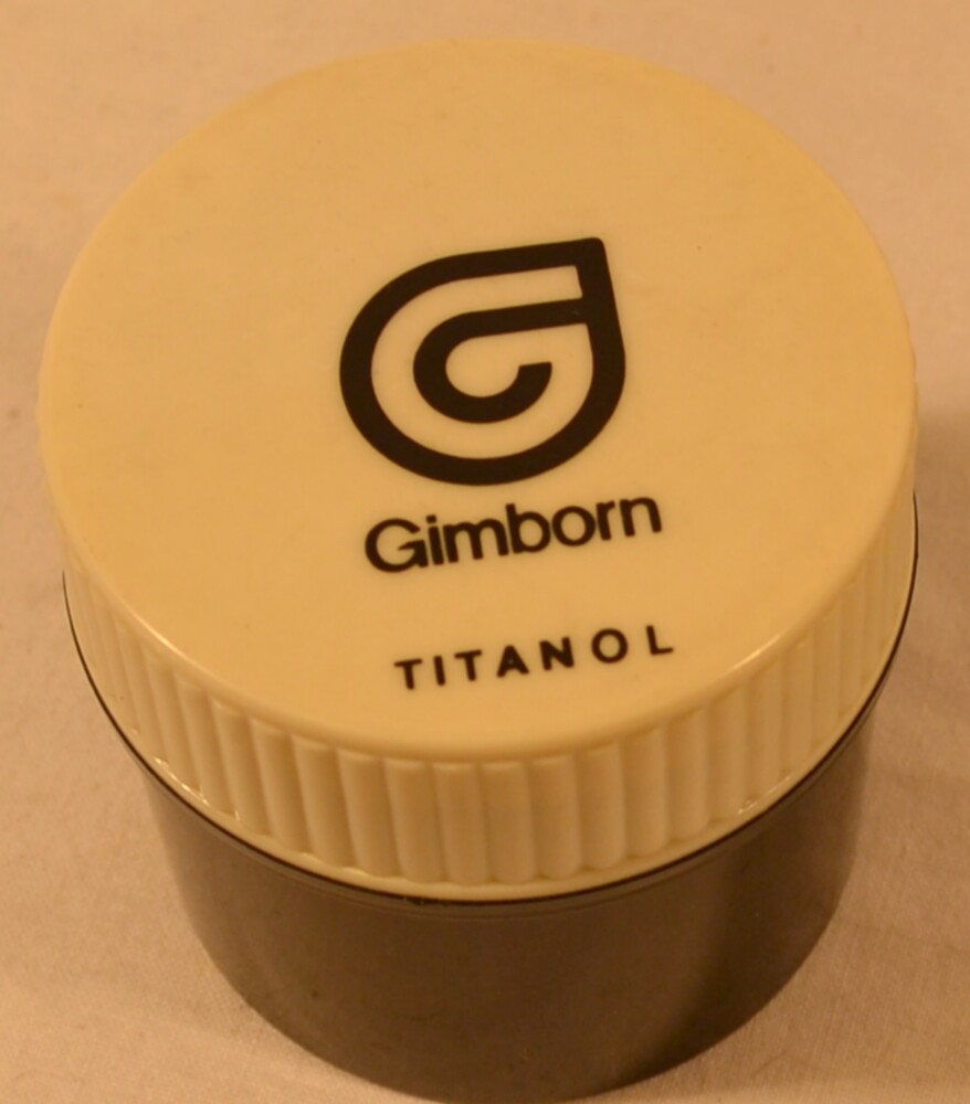 Vijf potten gevuld met lijm, titanol door H. van Gim...