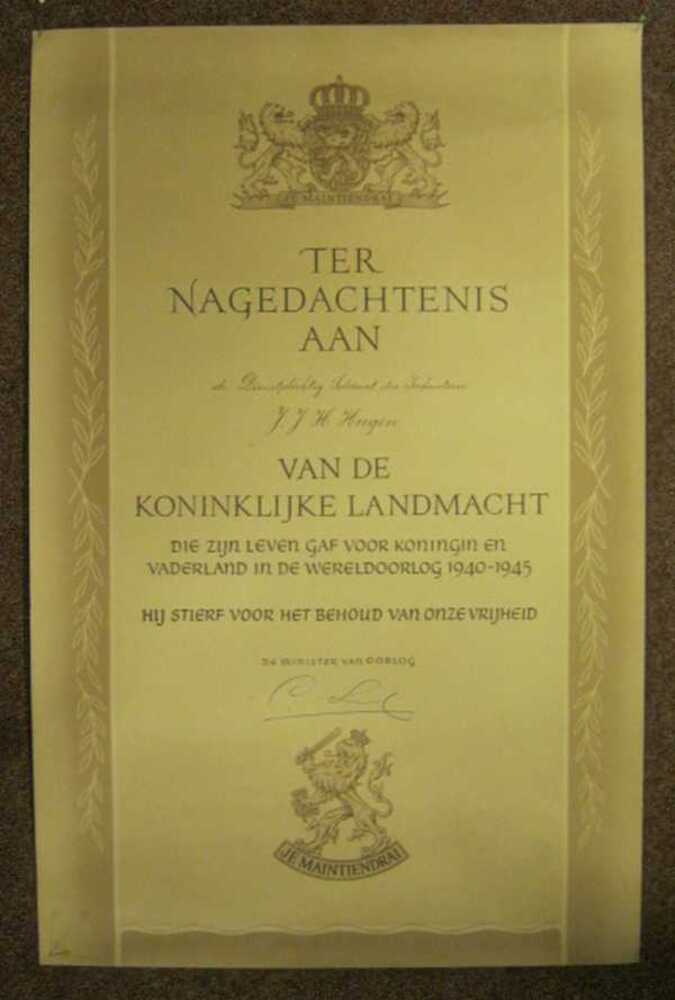 Oorkonde van papier ter nagedachtenis aan dienstplic...