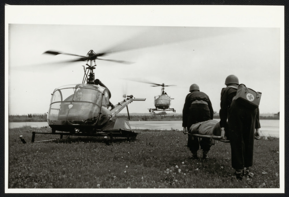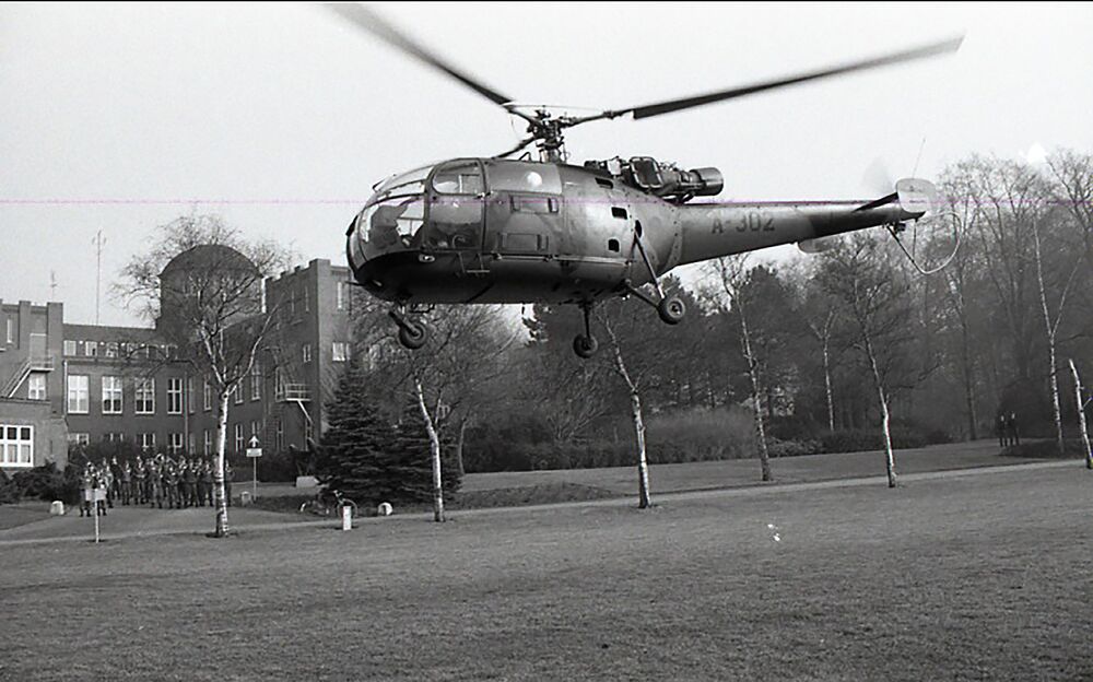 De Alouette A-302 stijgt op na een bezoek aan de Limos.