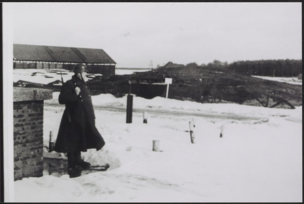 Duitse militair op wacht in de sneeuw.