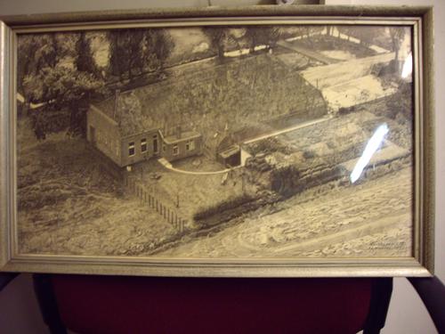 potloodtekening, woning 1947, boerderij met omheinin...