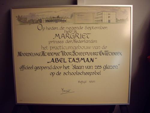 plaquette van de opening Zeevaartschool Abel Tasman ...