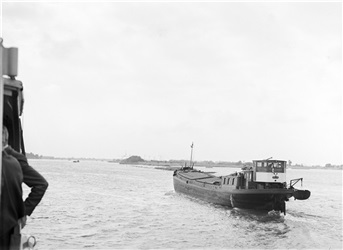 Schip wordt omgebouwd tot veerboot Haringvliet, 1957