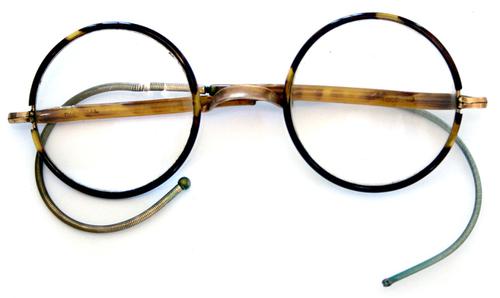 Bril met ronde glazen, schildpad montuur zadelbrug. ...