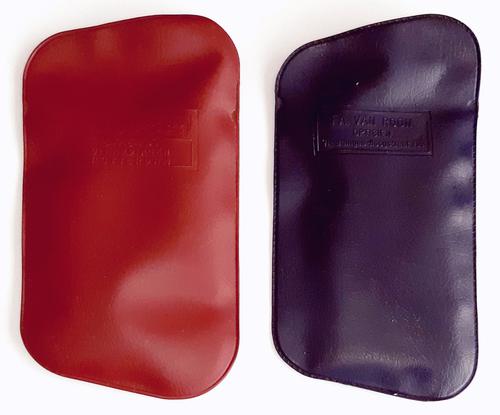 Rode en blauwe plastic insteek hoesjes voor bril. Mo...