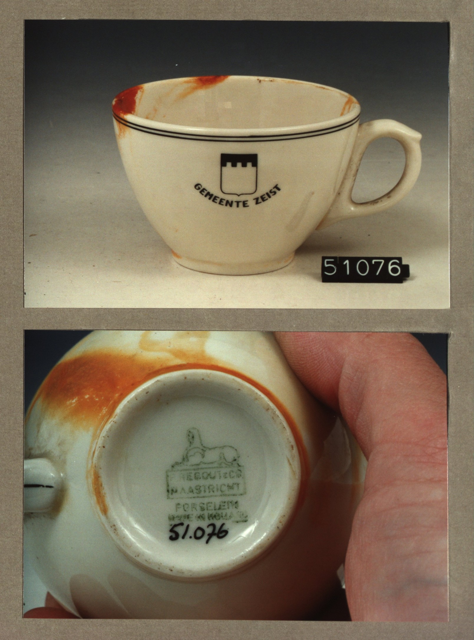 Kop met opschrift, model SMN met decor Gemeente Zeist