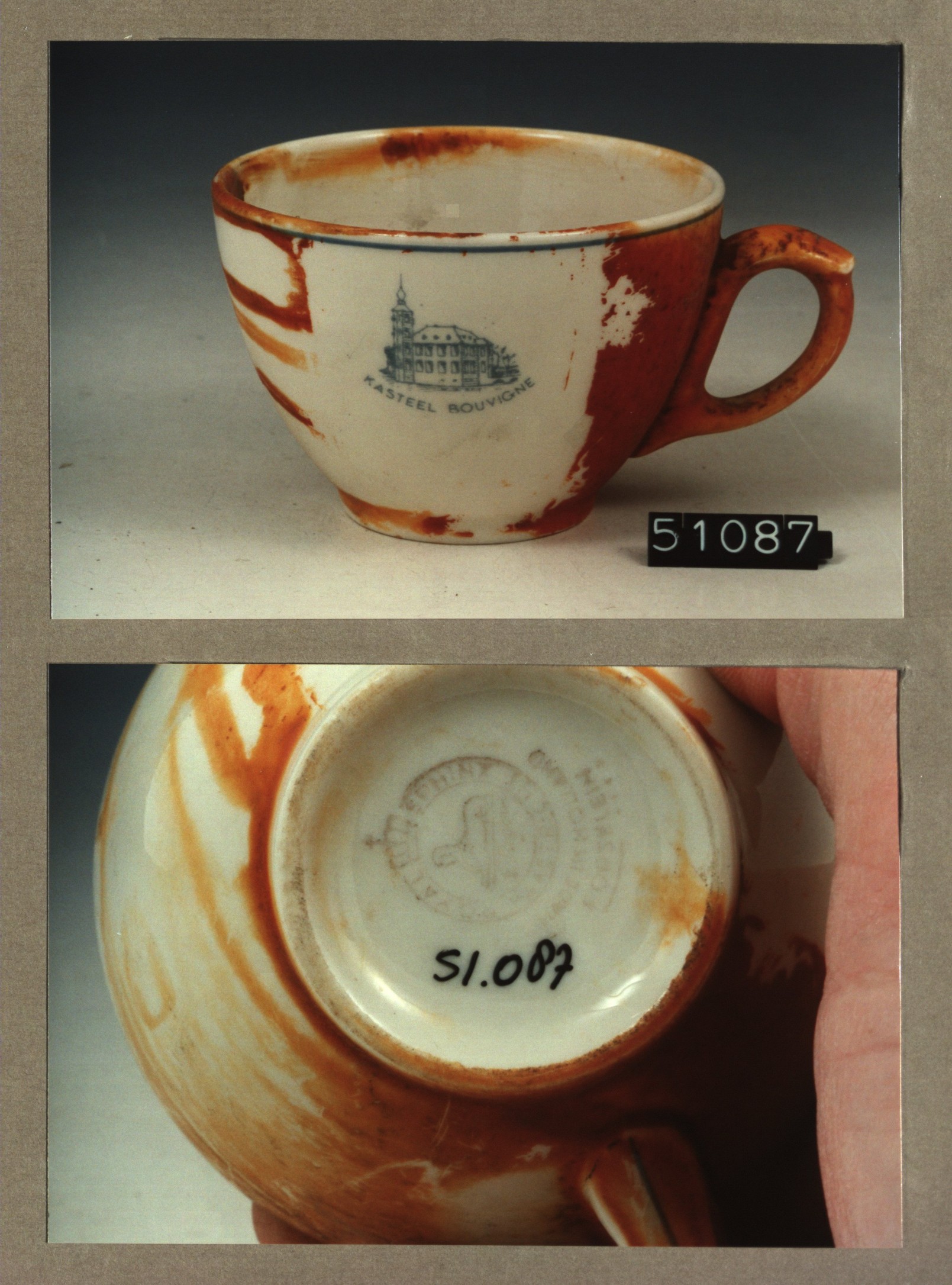 Kop met opschrift, model SMN met decor Kasteel Bouvigne