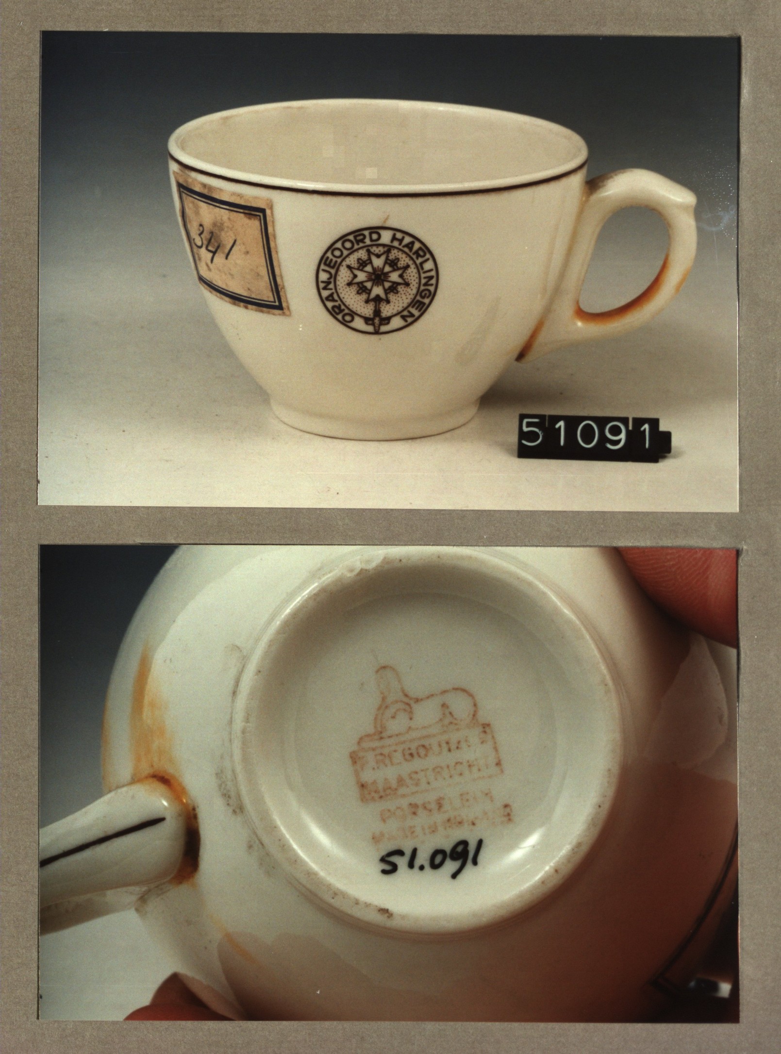 Kop met opschrift, model SMN met decor Oranjeoord Ha...