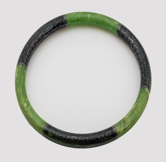Brede armband van groen gevlamde kunststof met drie ...