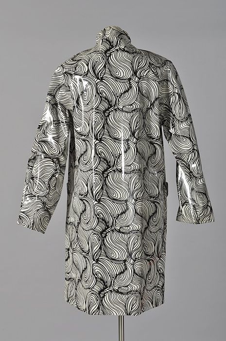 Plastic knielange regenjas of lakjas met een zwart-w...