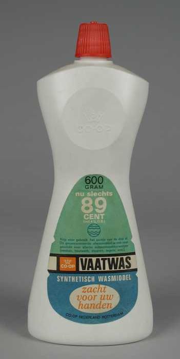 Witte plastic fles Co-op afwasmiddel met etiket en r...