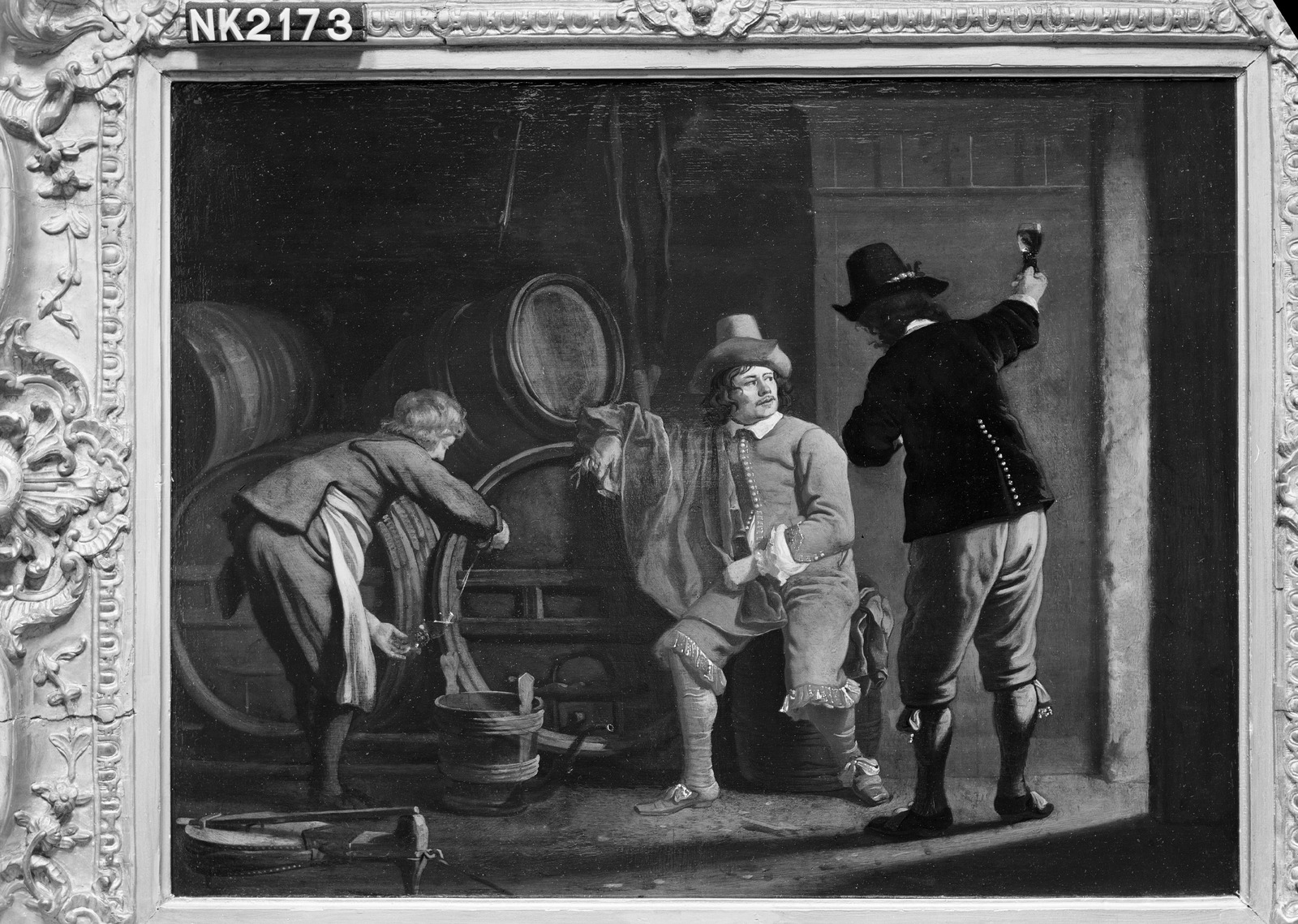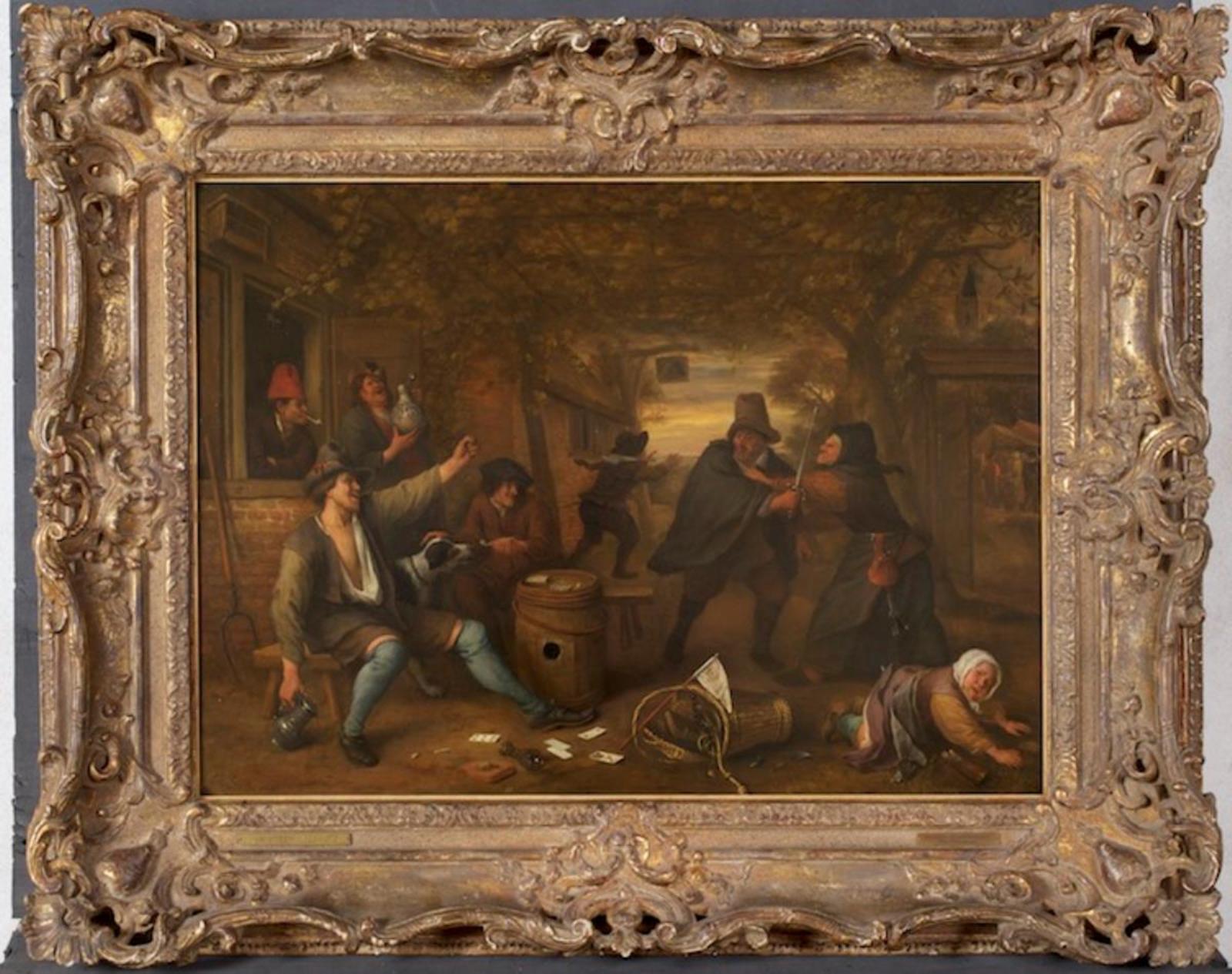 Een zeventiende eeuws interieur met een man die een ...