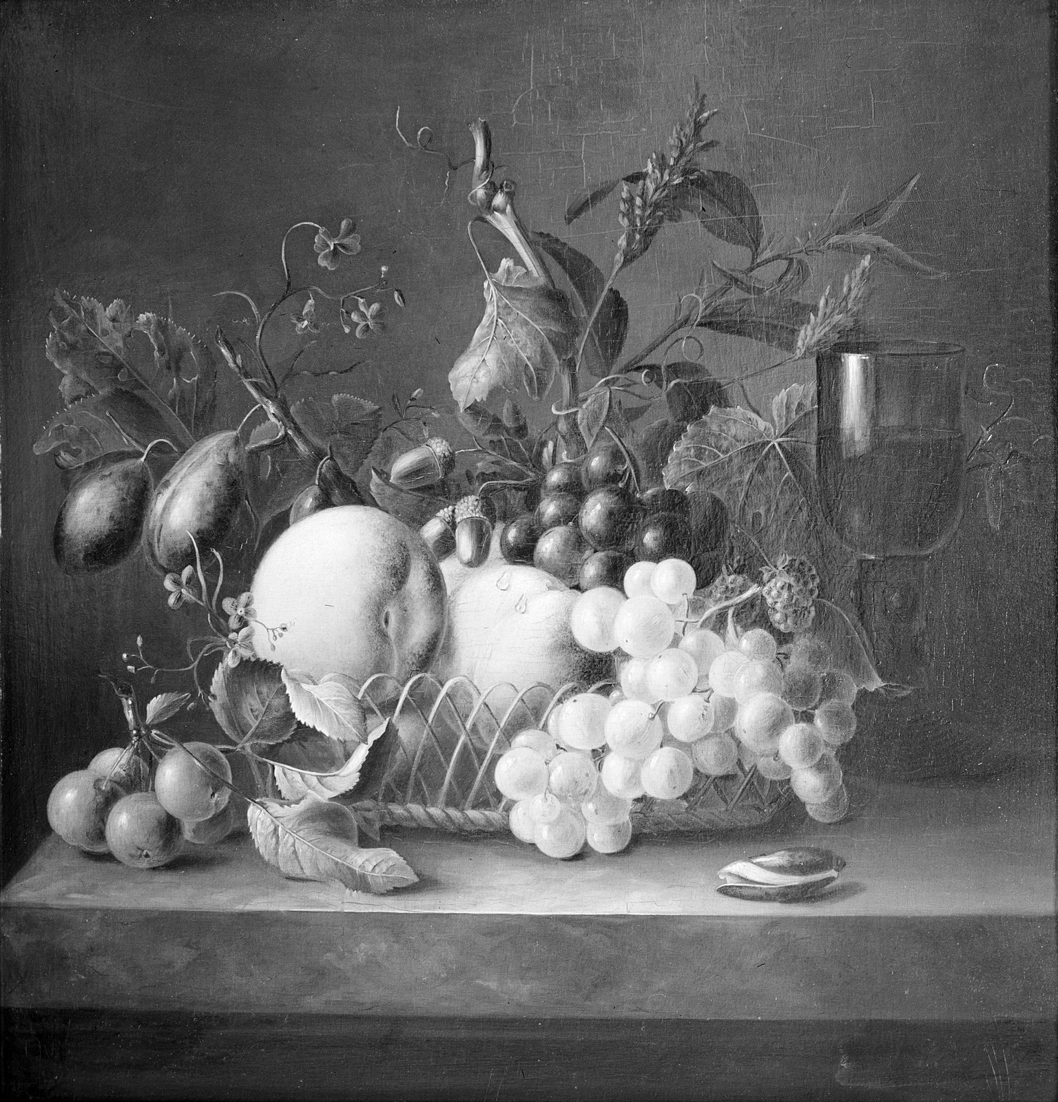 Stilleven met fruit en wijnglas