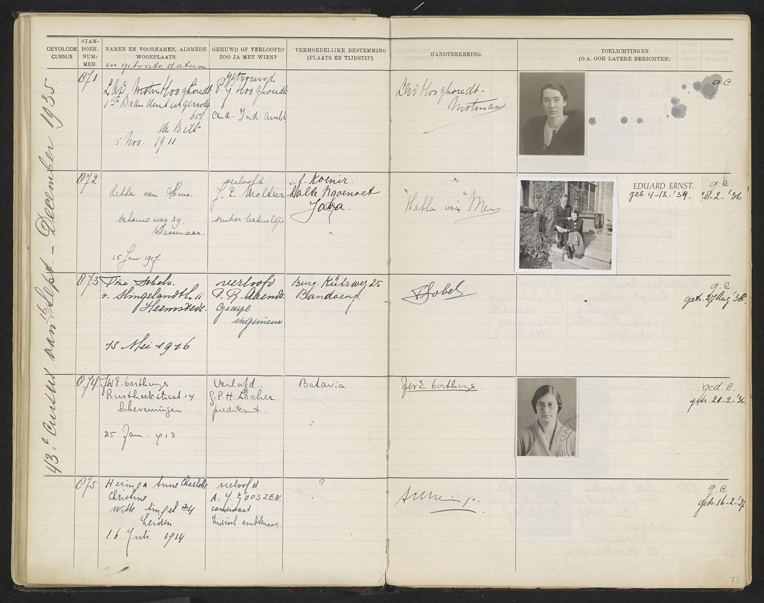 Blad 73 uit Stamboek van de leerlingen der Koloniale...