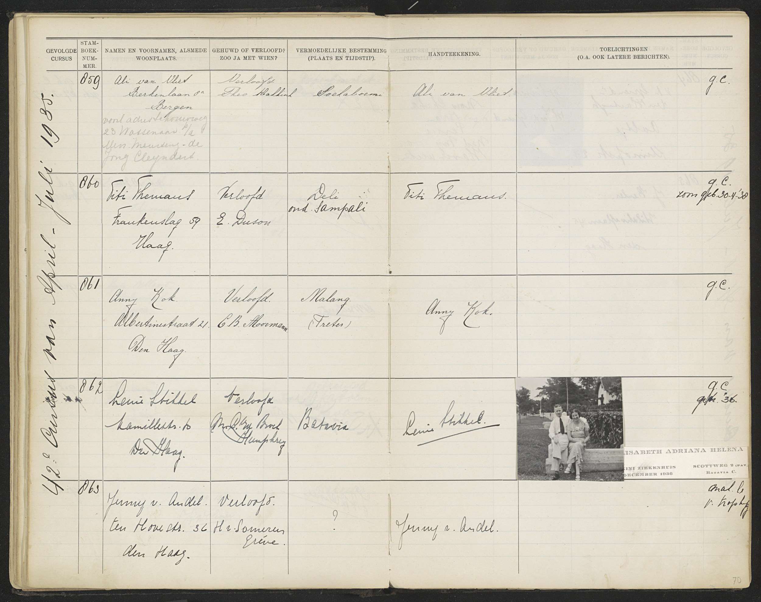 Blad 70 uit Stamboek van de leerlingen der Koloniale...