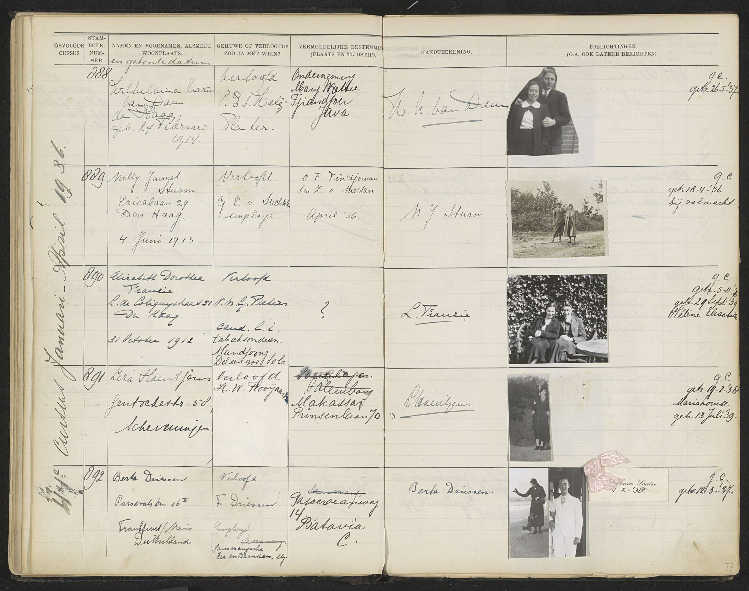 Blad 71 uit Stamboek van de leerlingen der Koloniale...