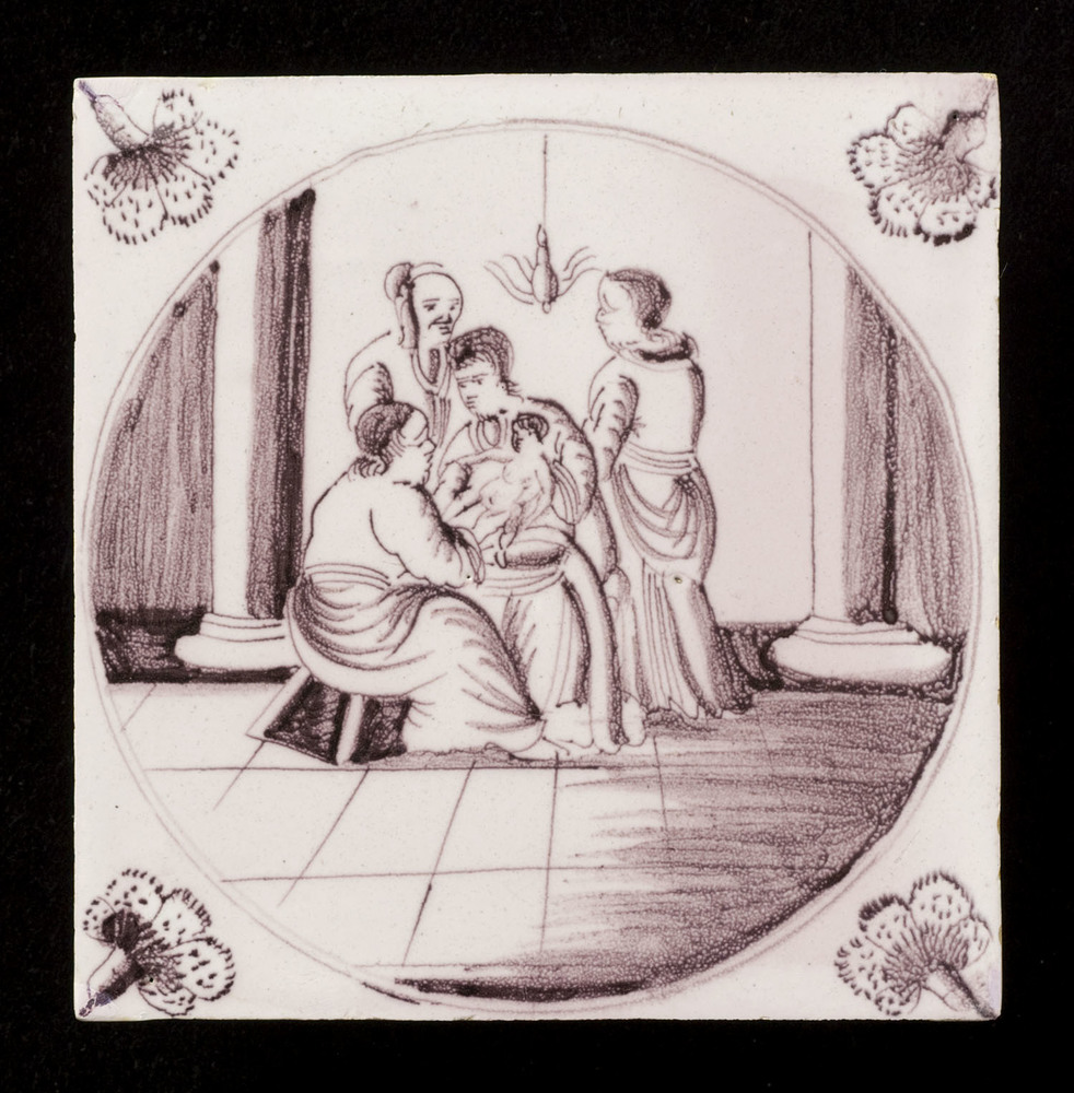Tegel van keramiek met tinglazuur, voorstellende: de...