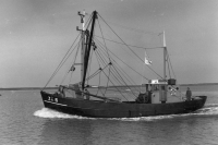 Garnalenvissers van Zoutkamp. De ZK 6 vaart uit. De ...