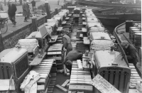 Vertrek vanuit Amsterdam van een lading rupstractors...