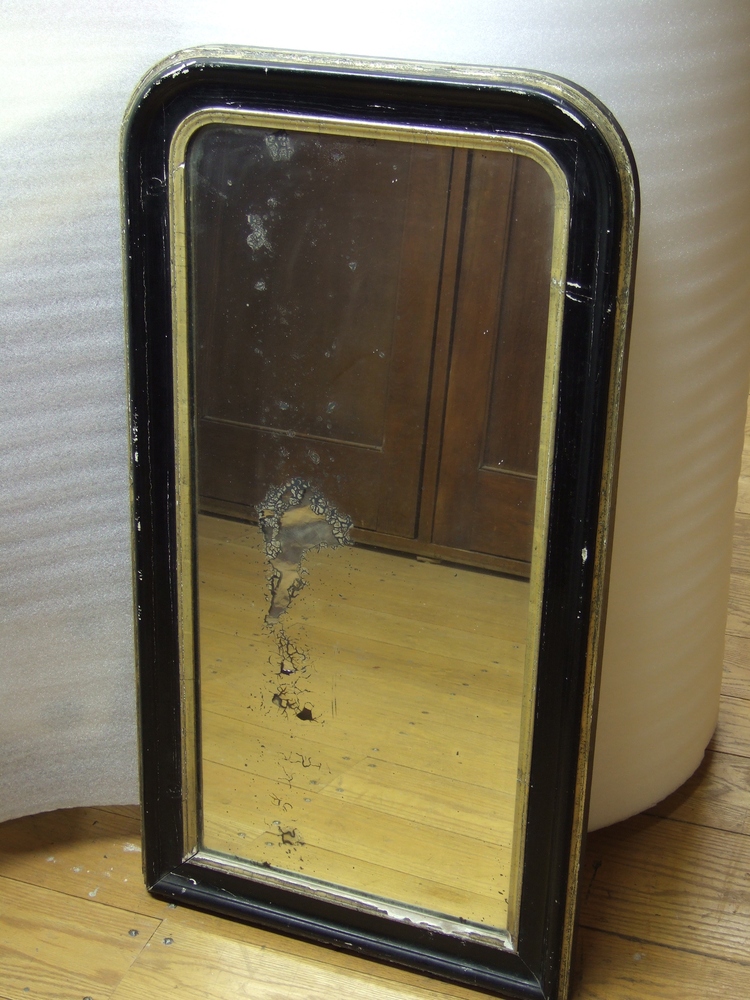 Spiegel in zwart gelakte houten lijst met goudkleuri...