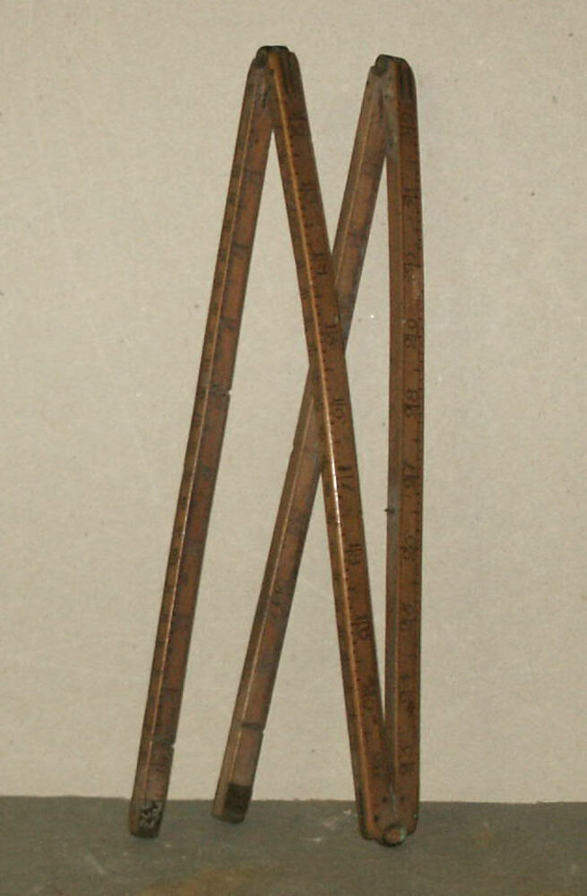 palmhouten duimstok met koperen scharnieren en doppen