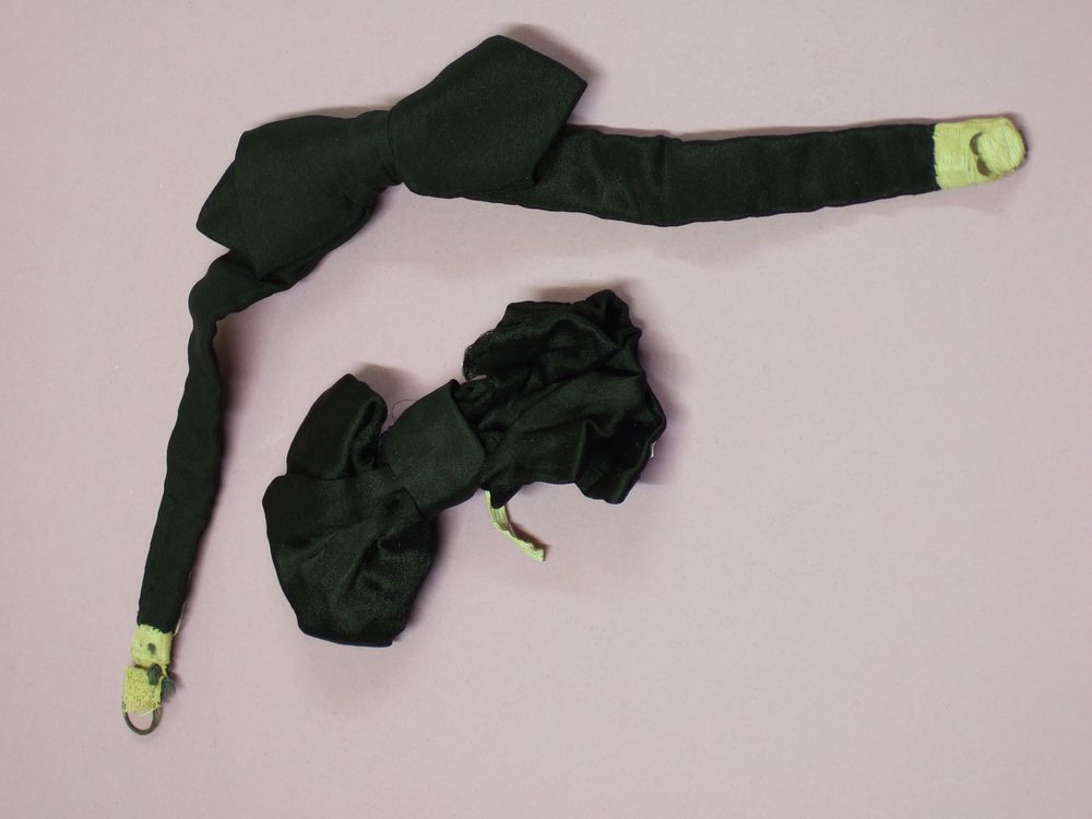 2 zwarte halsstrikjes van kunstzijde, circa 1900