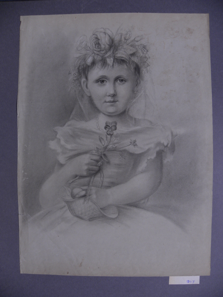 Pasteltekening voorstellende portret van meisje, gea...