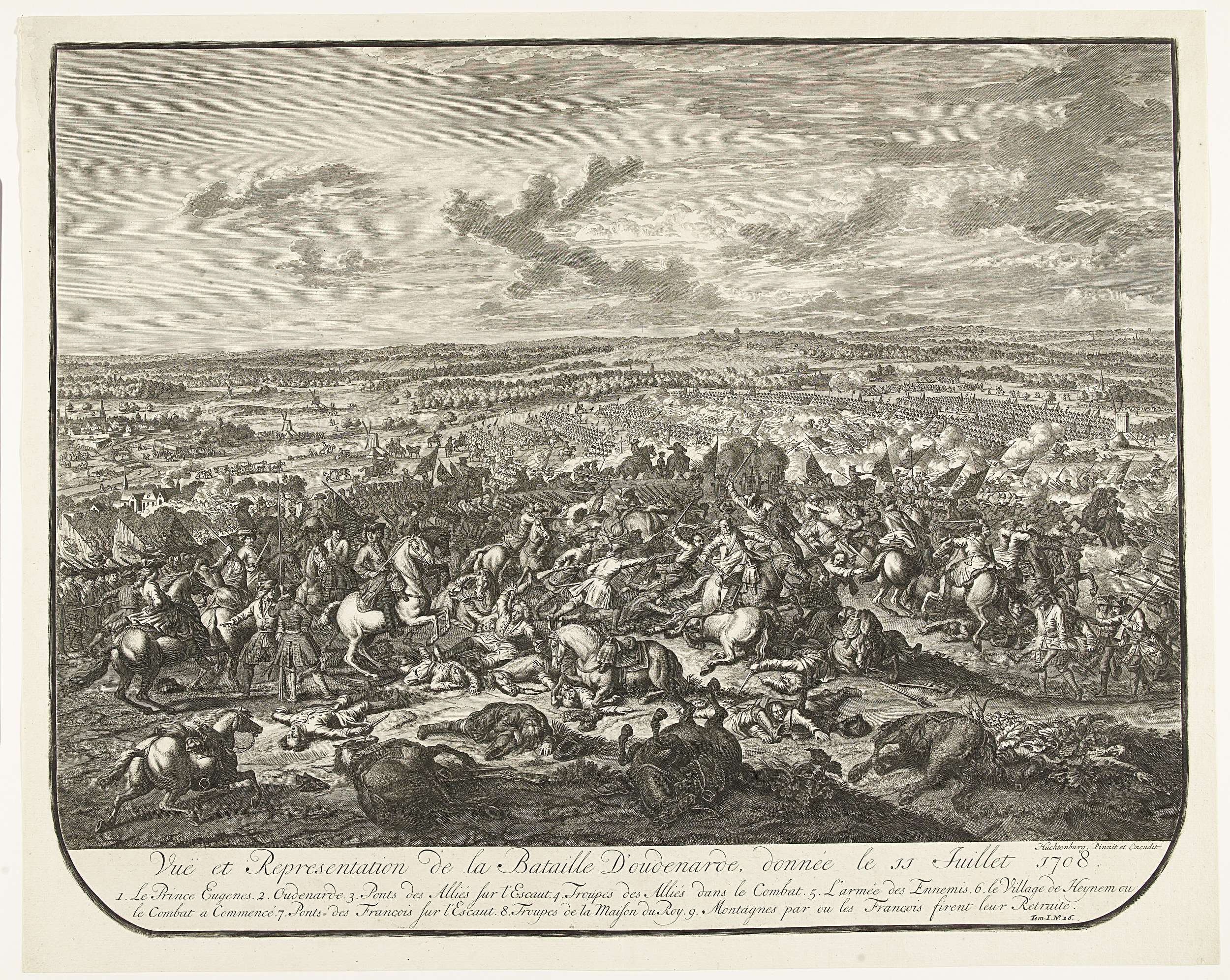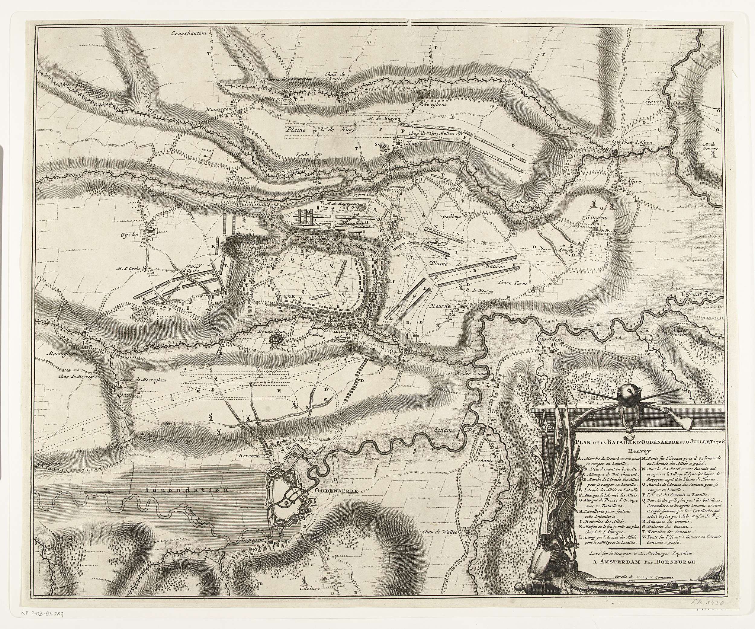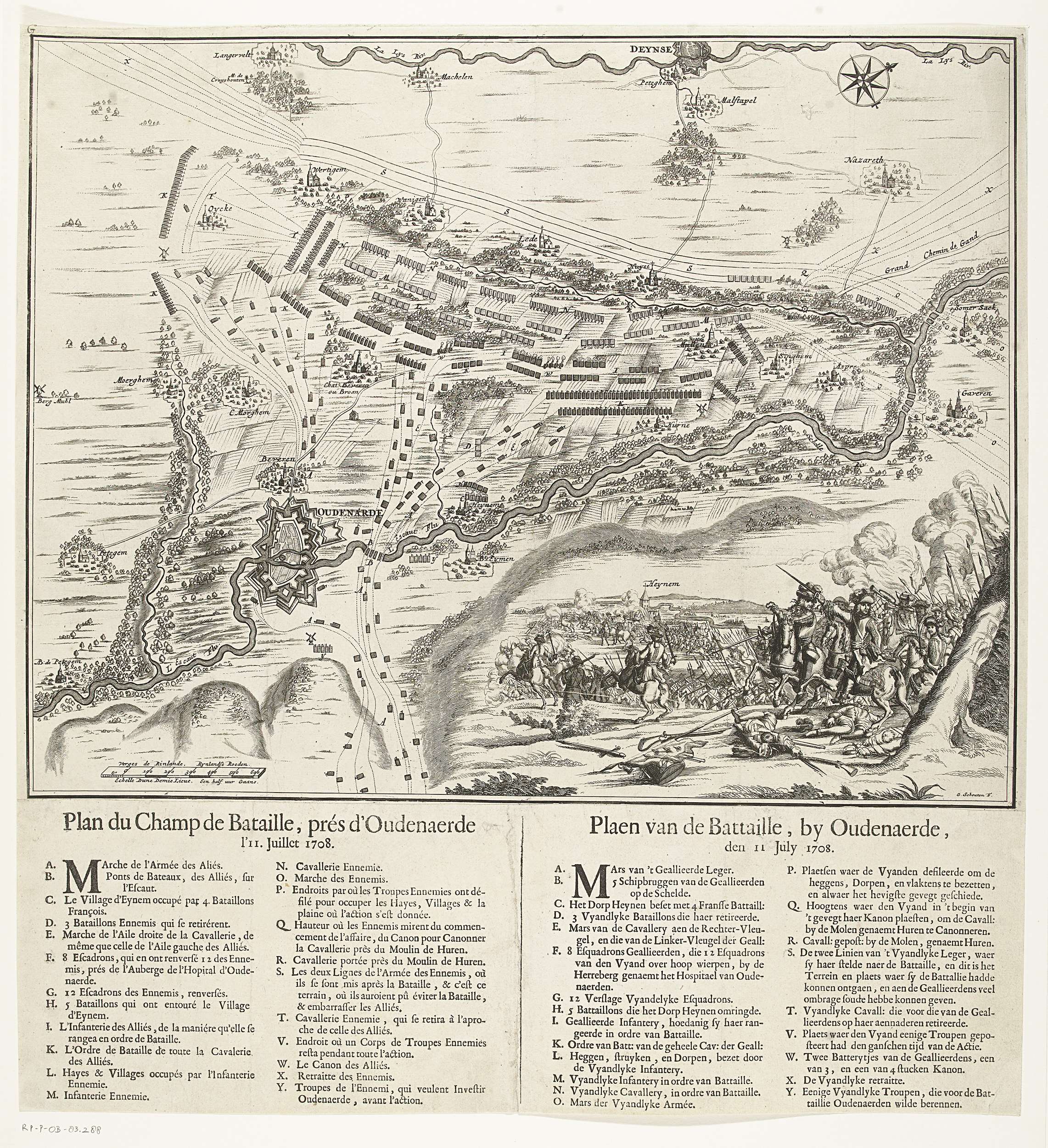 Kaart van de slag bij Oudenaarde, 1708