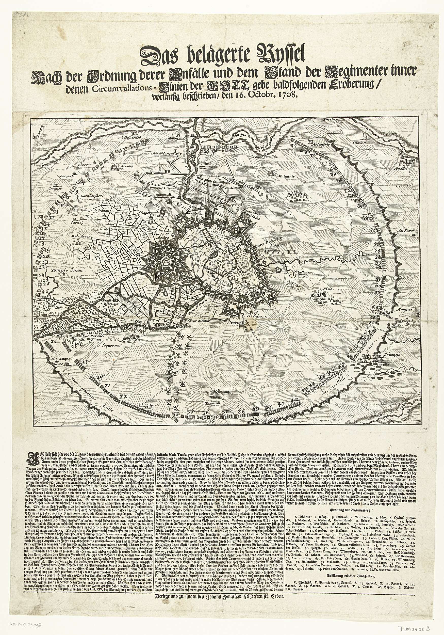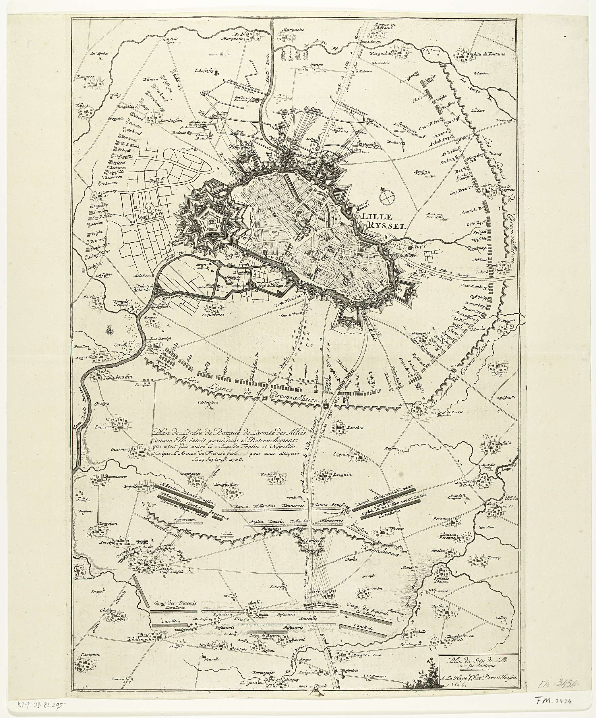 Plan van het beleg van Lille, 1708