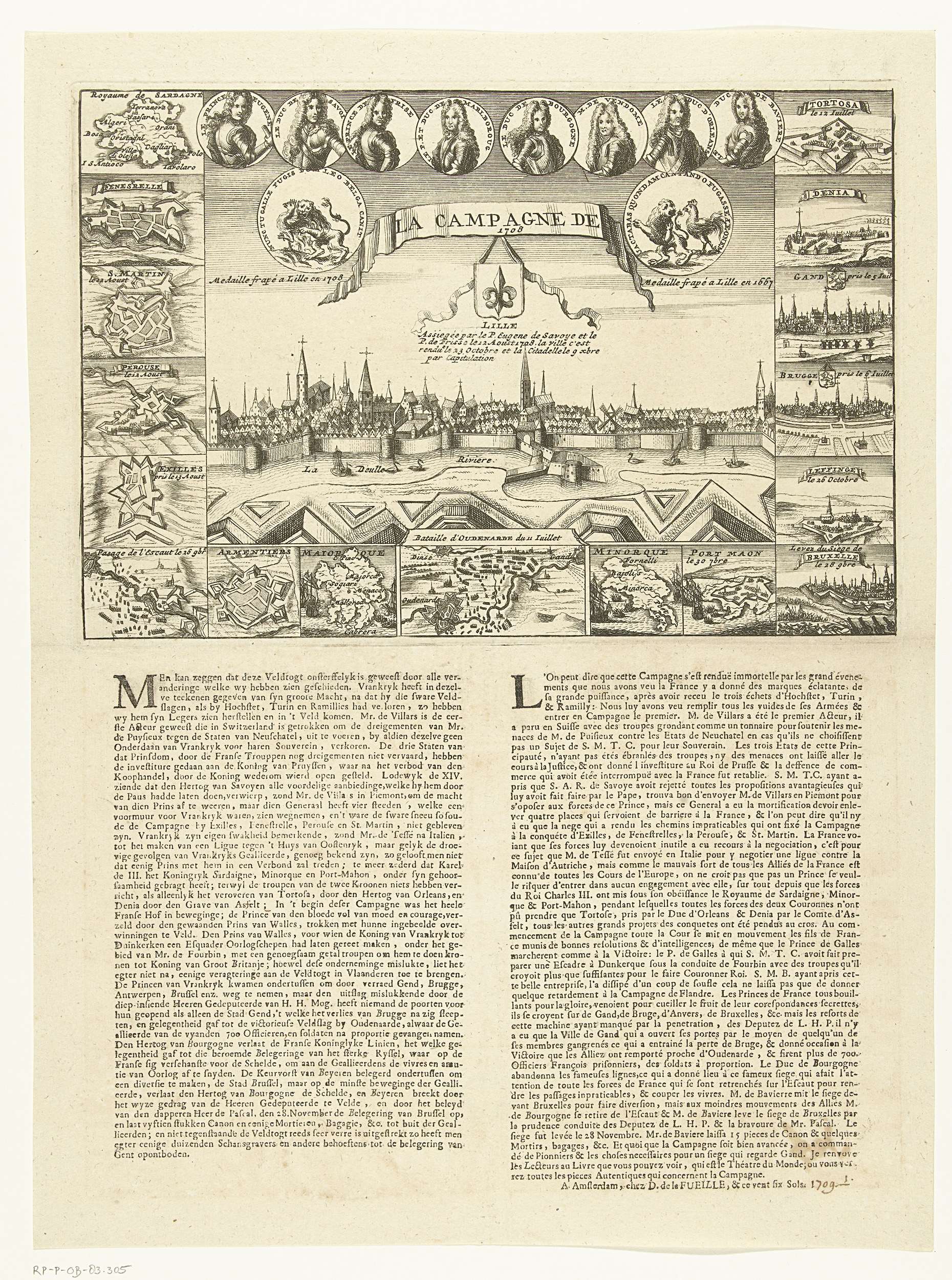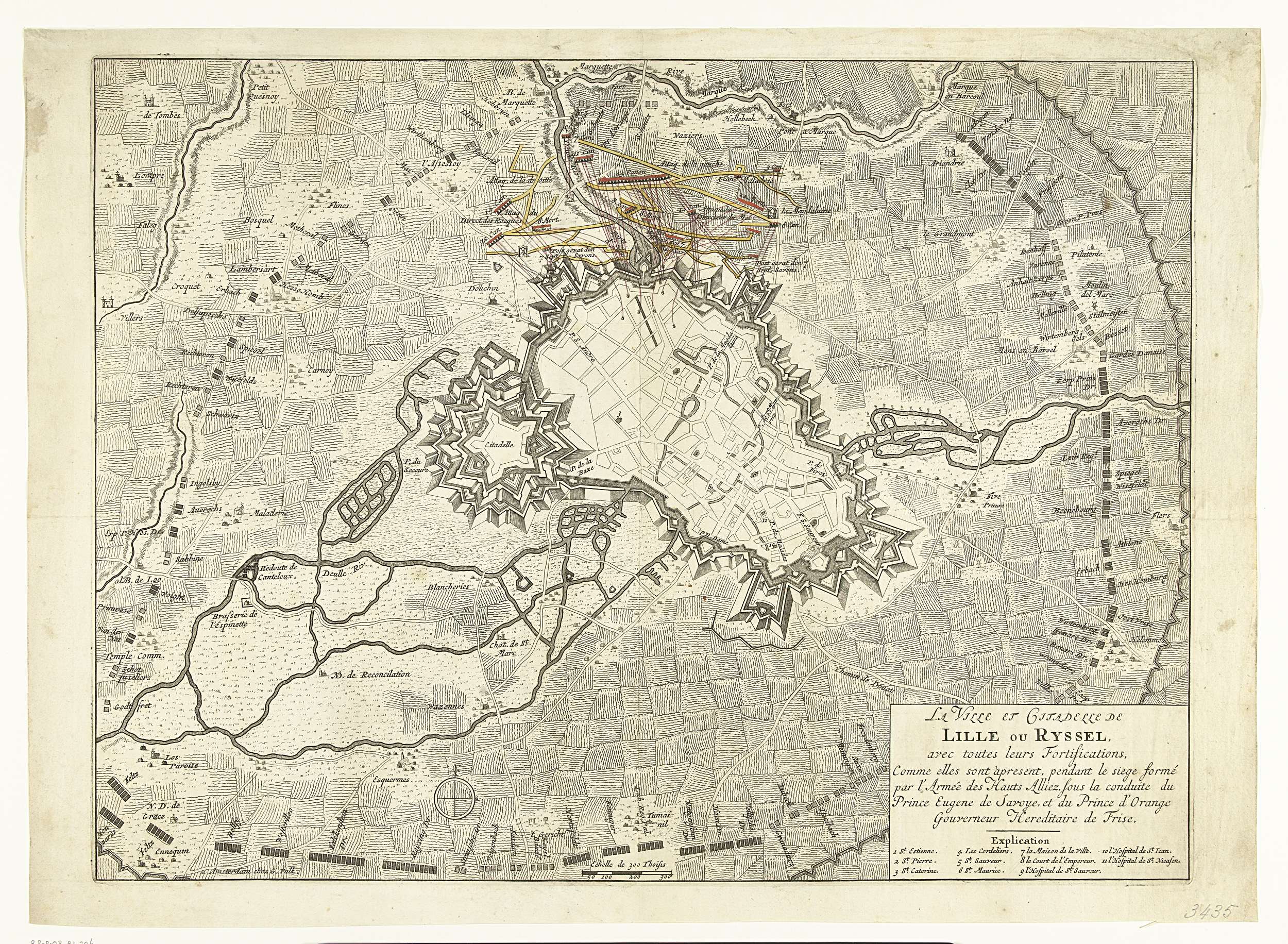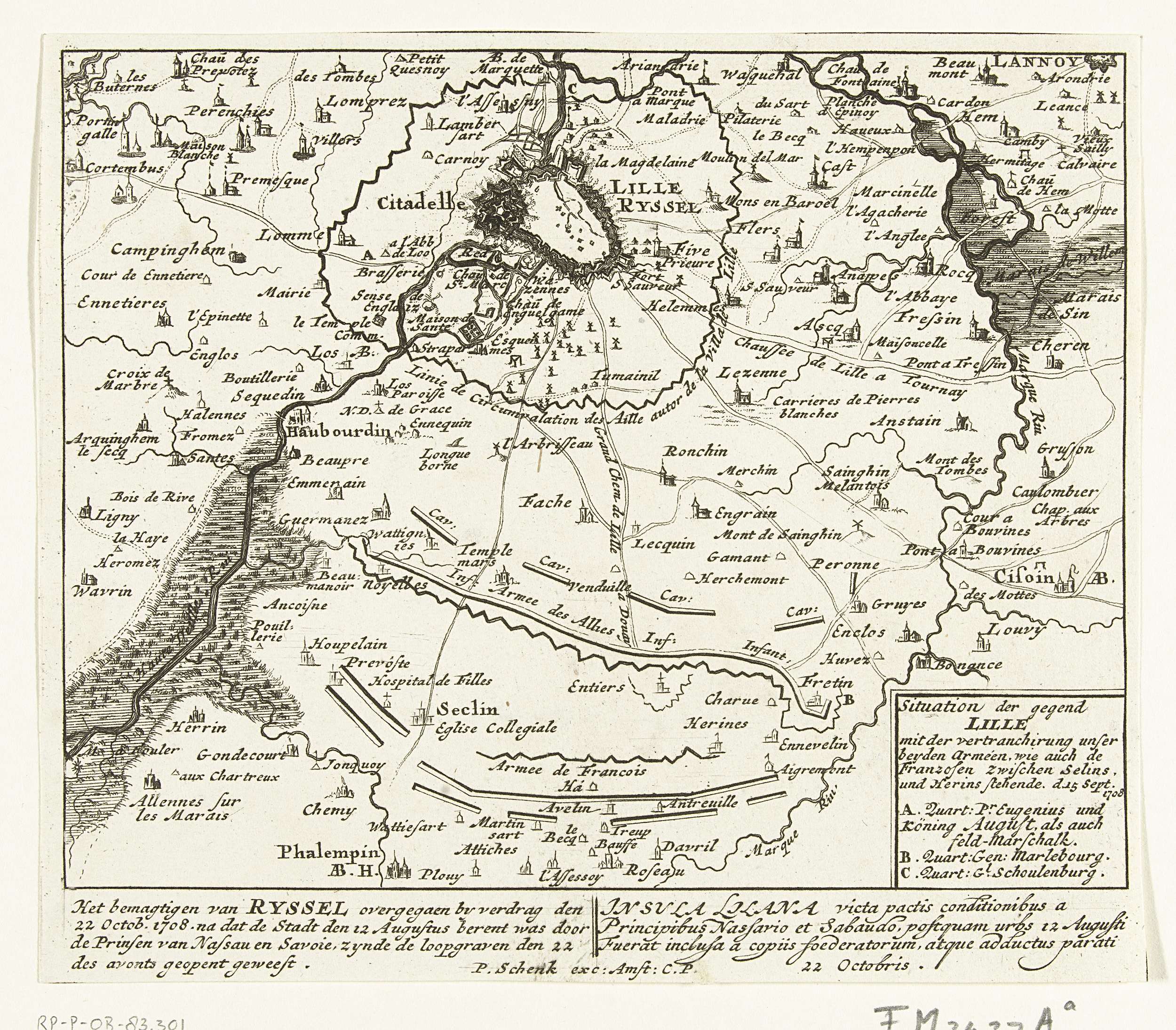 Kaart van het beleg van Lille, 1708