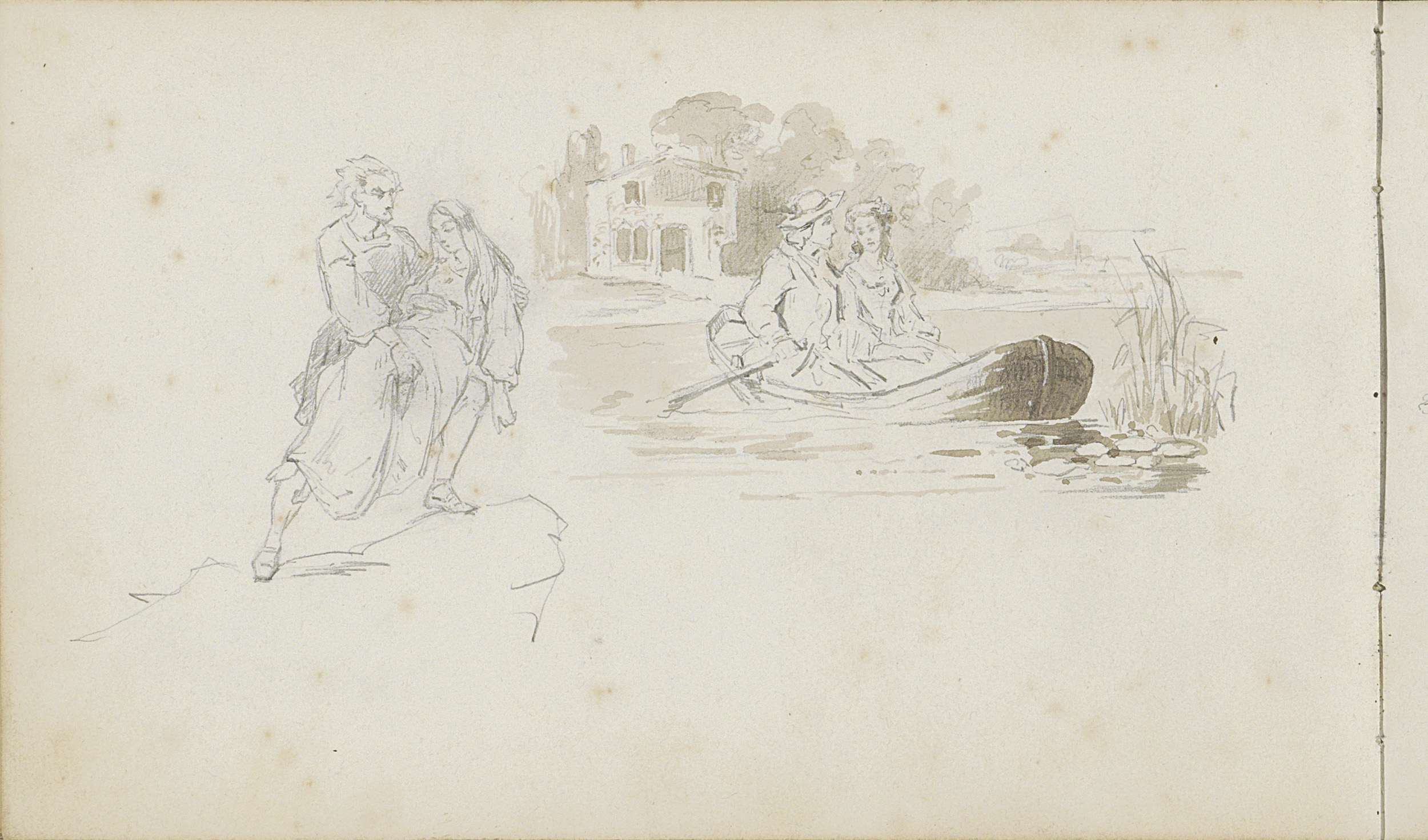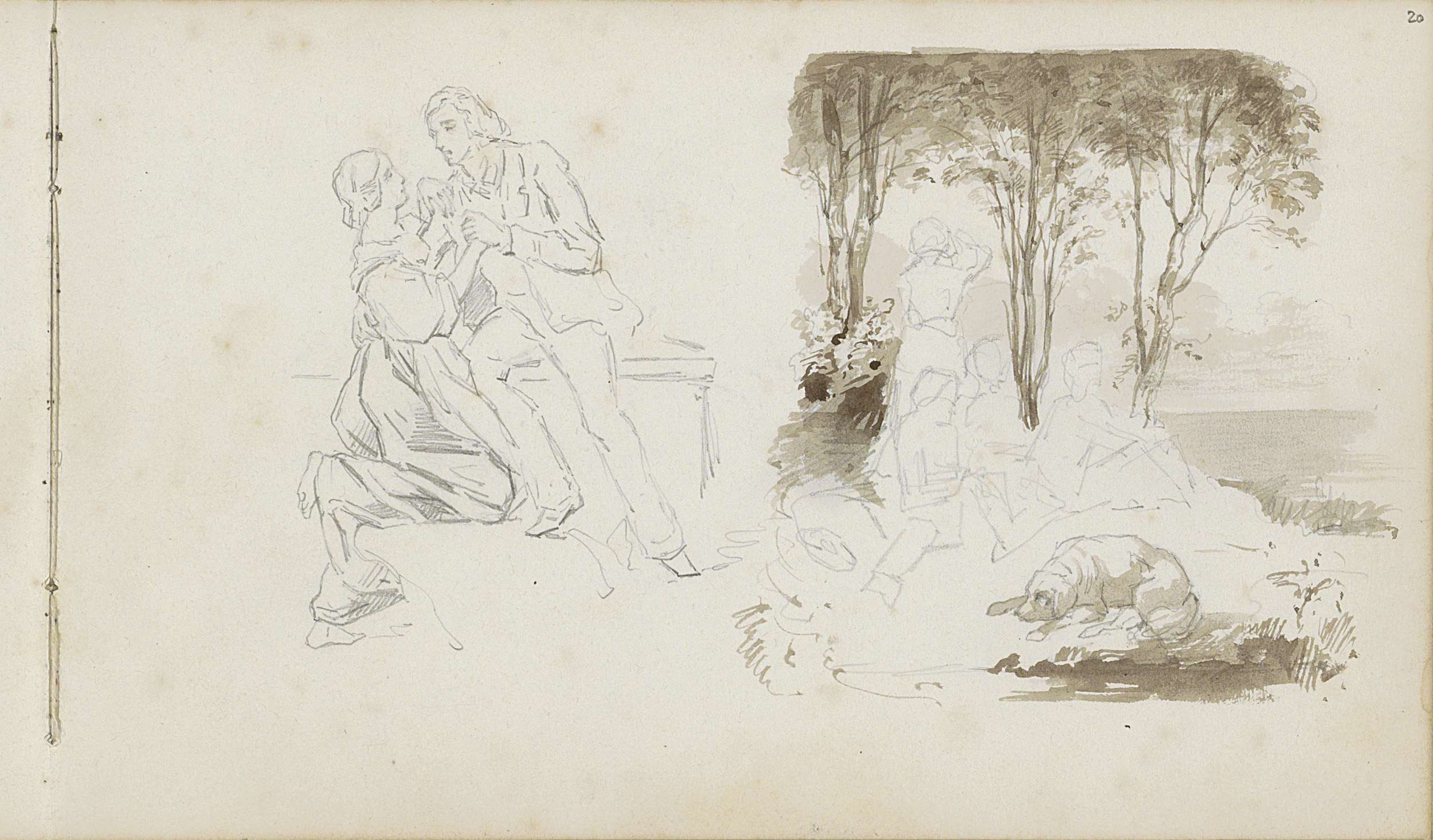 Studieblad met (naakte) figuren en de oprijlaan van ...